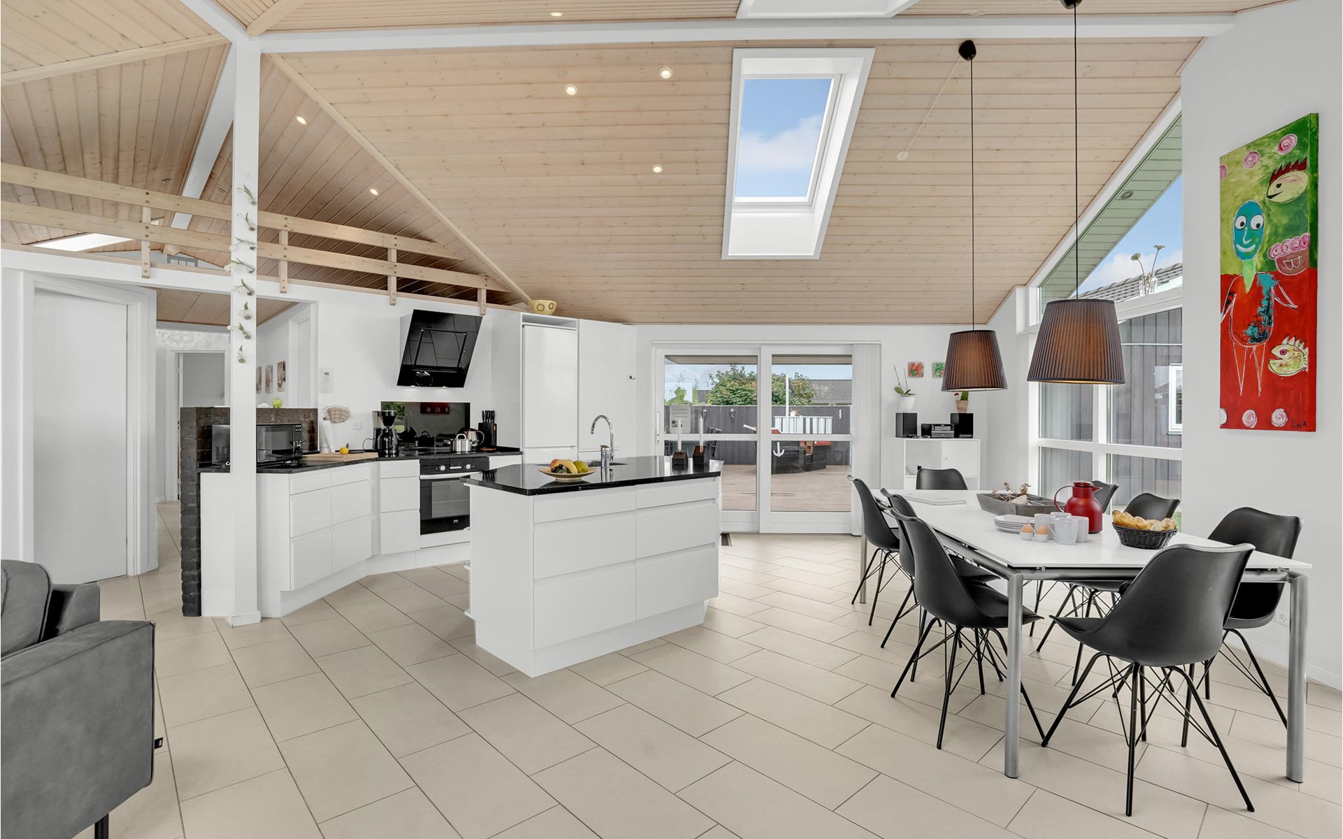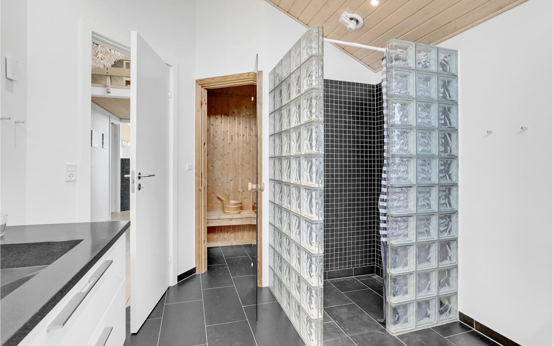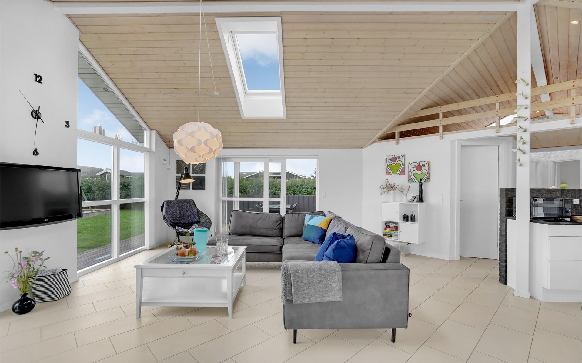 Qualitätsferienhaus mit einer schönen Aussicht auf die Natur. Die Einrichtung ist geschmackvoll, hell und besteht aus modernen Möbeln. Küche und Wohnzimmer liegen zueinander offen, zudem sorgen die großen Panoramafenster für einen guten Lichteinfall im ganzen Haus. Es gibt gute Schlafzimmer und Badezimmer solwie eine Sauna und einen Whilpool zum Entspannen. Gerne aufhalten werden Sie sich bestimmt auf der sehr großen Terrasse, auf Ihr können Sie sich ungestört aufhalten. An heißen Sommertagen können Sie sogar die Außendusche benutzen. Im am Haus angrenzenden Annex ist ein eigenes Badezimmer. Hier wird Ihnen alles, was das Urlaubsherz begehrt, geboten. Flovt genießt eine grüne, ümbegende Landschaft und einen kinderfreundlichen Strand am Kleinen Belt, denn das Wasser ist nicht tiefgründig.