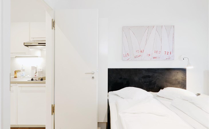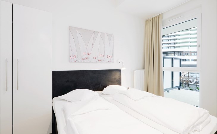 Ihre Wohnung befindet sich im Erdgeschoss der Anlage und verfügt über ein separates Schlafzimmer mit einem gemütlichen Doppelbett. Bei dieser Ferienwohnung steht Ihnen ein extrabreiter Parkplatz zur Verfügung.
