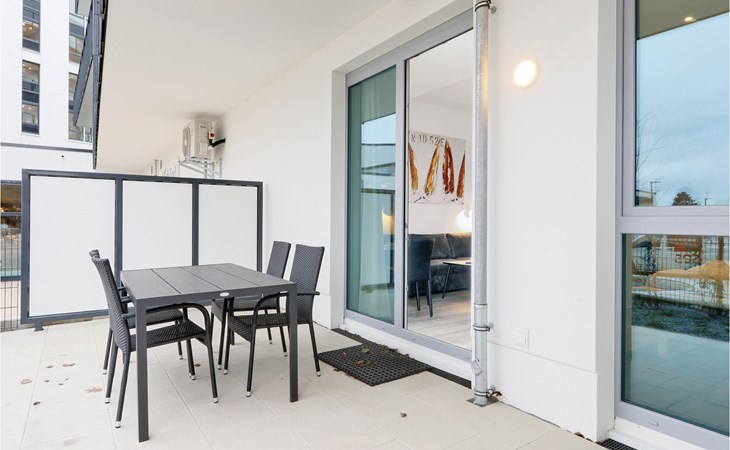 Die moderne Küchenzeile bietet ausreichend Platz zum Kochen und ist mit hochwertigen Markengeräten ausgestattet. Hier finden Kaffeeliebhaber eine Nespresso-Maschine (Kapseln bitte selbst mitbringen), sowie Thermoskanne und Handfilter zum Selbstbrühen, falls Sie doch den klassischen Filterkaffee bevorzugen. Auf der Terrasse können Sie die frische Ostseeluft und das Rauschen der Wellen genießen oder gemeinsame Mahlzeiten mit der Familie einnehmen.