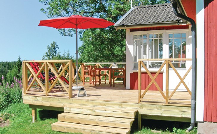 Gemütliches Ferienhaus mit offener Raumaufteilung und großer Terrasse. Eine steile Treppe führt ins Obergeschoss, wo zwei Schlafzimmer liegen. Die Schlafzimmer werden weder durch Wand oder Tür getrennt. Schutzgitter für die Treppe ist vorhanden. Von der Glasveranda blicken Sie auf die Landschaft. Trampolin, Schaukeln und Rutsche gemeinsam mit S06443. 2 km sind es bis zum See Storsjön. Besuchen Sie auch die schöne Holzstadt Eksjö in 25 km Entfernung. Das Erholungsgebiet Lövhult, außerhalb von Nässjö liegt 22 km entfernt. Dort gibt es beleuchtete Fitnesspfade. Im Winter können Sie hier gut mit Langlaufski Sport betreiben. Loipen sind 3, 5 und 10 km lang. Im Sommer finden Sie im Umkreis von 30 km 4 Golfplätze. 32 km sind es bis zum Elchpark Vrigstads.