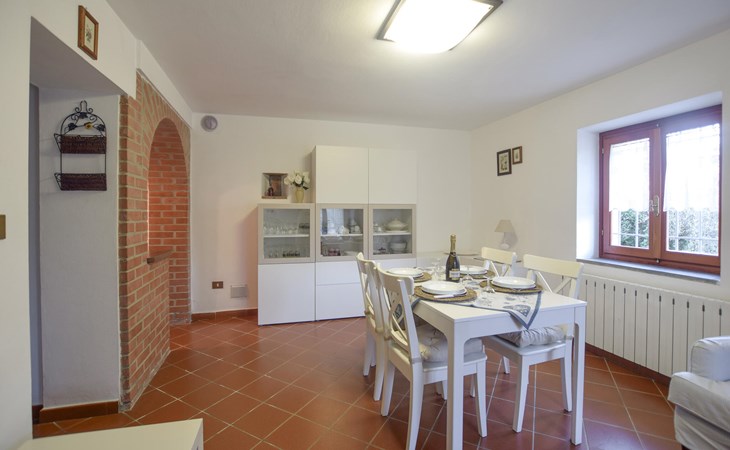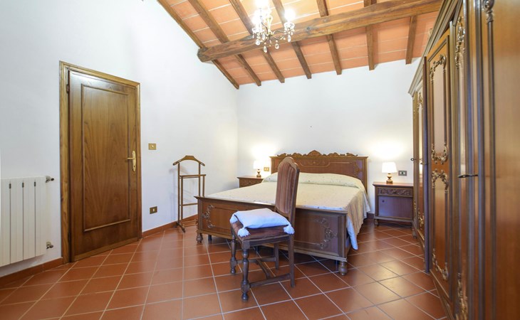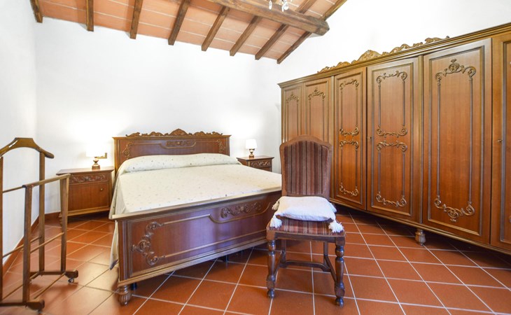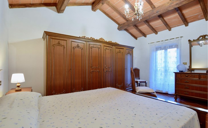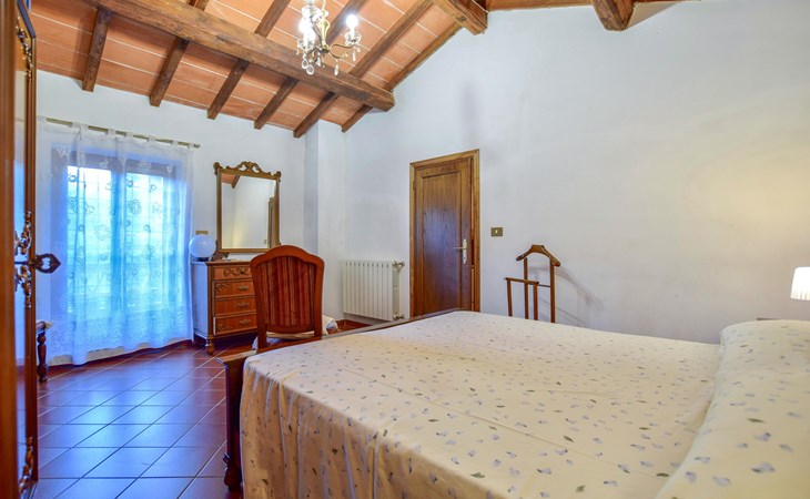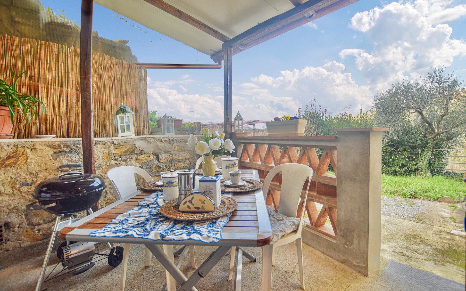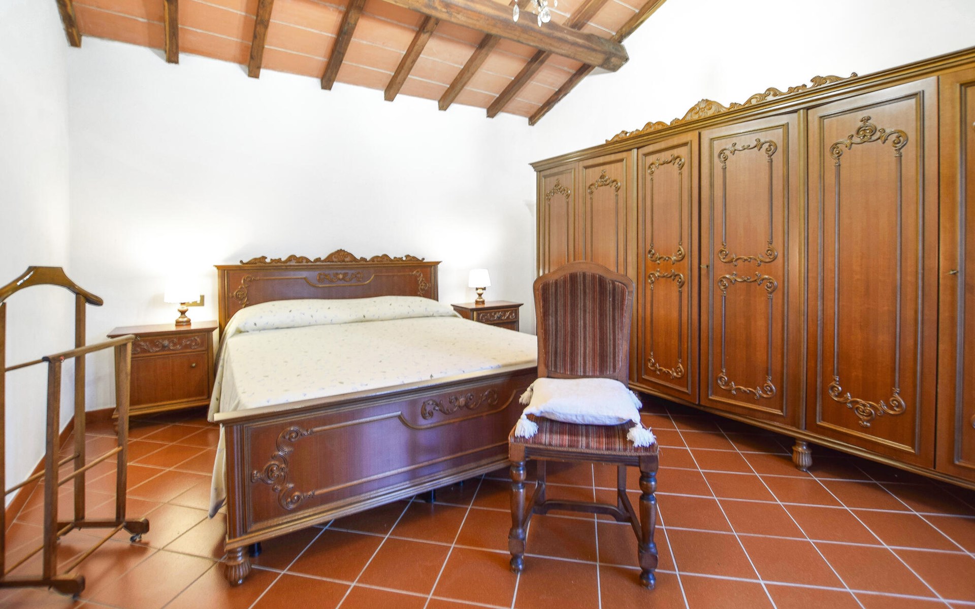 Genießen Sie den weiten Blick über die toskanische Landschaft von der großzügigen Terrasse dieses klassischen Ferienhauses.