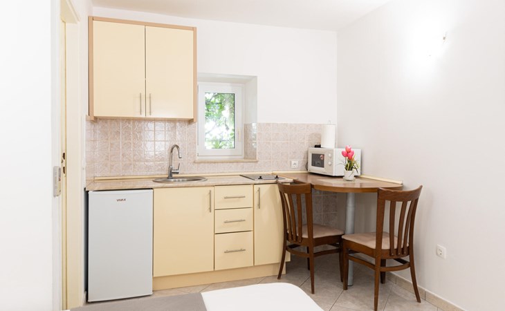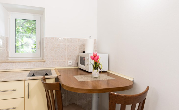 Nur wenige Schritte sind es von dieser luftigen Ferienwohnung bis zu einem hübschen Kiesstrand, an dem Sie zu zweit den Alltag hinter sich lassen können. Zaubern Sie Ihre Mahlzeiten in der praktischen Küchenzeile und planen Sie Ihre Unternehmungen am einladenden Esstisch. Gönnen Sie sich nach langen Sonnenstunden erholsame Siestas und lassen Sie den Tag mit einem guten Buch oder einem Brettspiel ausklingen.