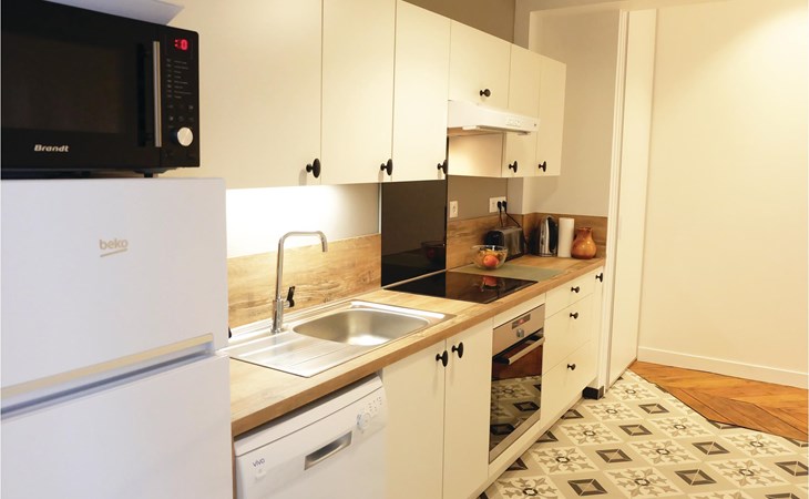 Verbringen Sie Ihre Auszeit in dieser eleganten Ferienwohnung, die Ihnen Komfort und eine zentrale Lage bietet. Treten Sie ein und machen Sie es sich im großen Wohn- und Essbereich gemütlich. Entspannen Sie auf dem Sofa, lesen Sie ein Buch oder verbringen Sie gesellige Abende am Esstisch. Die hohen Fenster lassen viel Tageslicht herein und schaffen eine helle, freundliche Atmosphäre. Nutzen Sie die gut ausgestattete Küche, um Ihre Mahlzeiten zuzubereiten, und genießen Sie das Zusammenspiel von moderner Ausstattung und klassischem Stil.