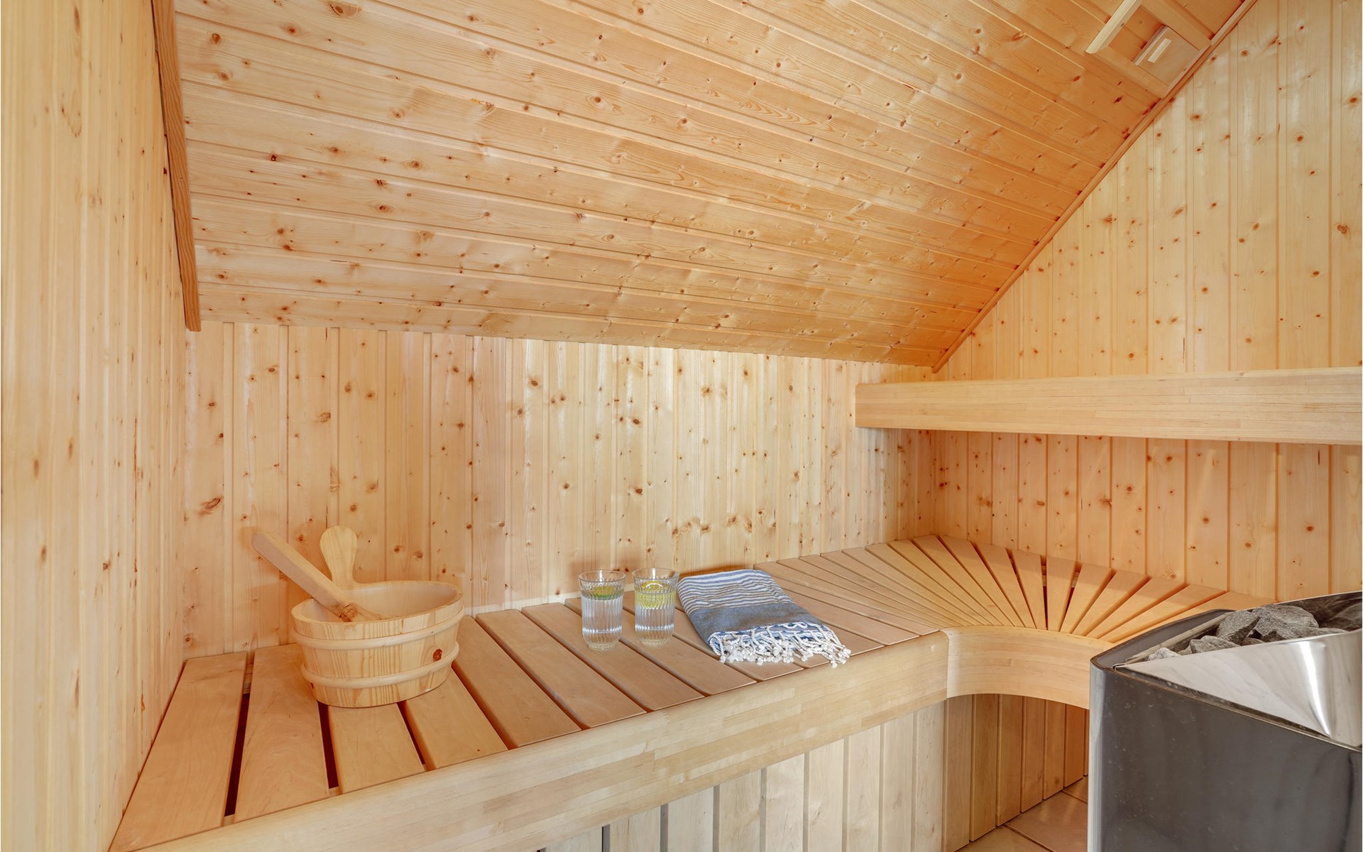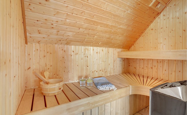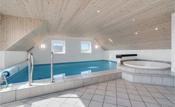 Gut instandgehaltenes Ferienhaus mit einem ansprechenden Wellnessbereich mit Swimmingpool, Whirlpool und Sauna.