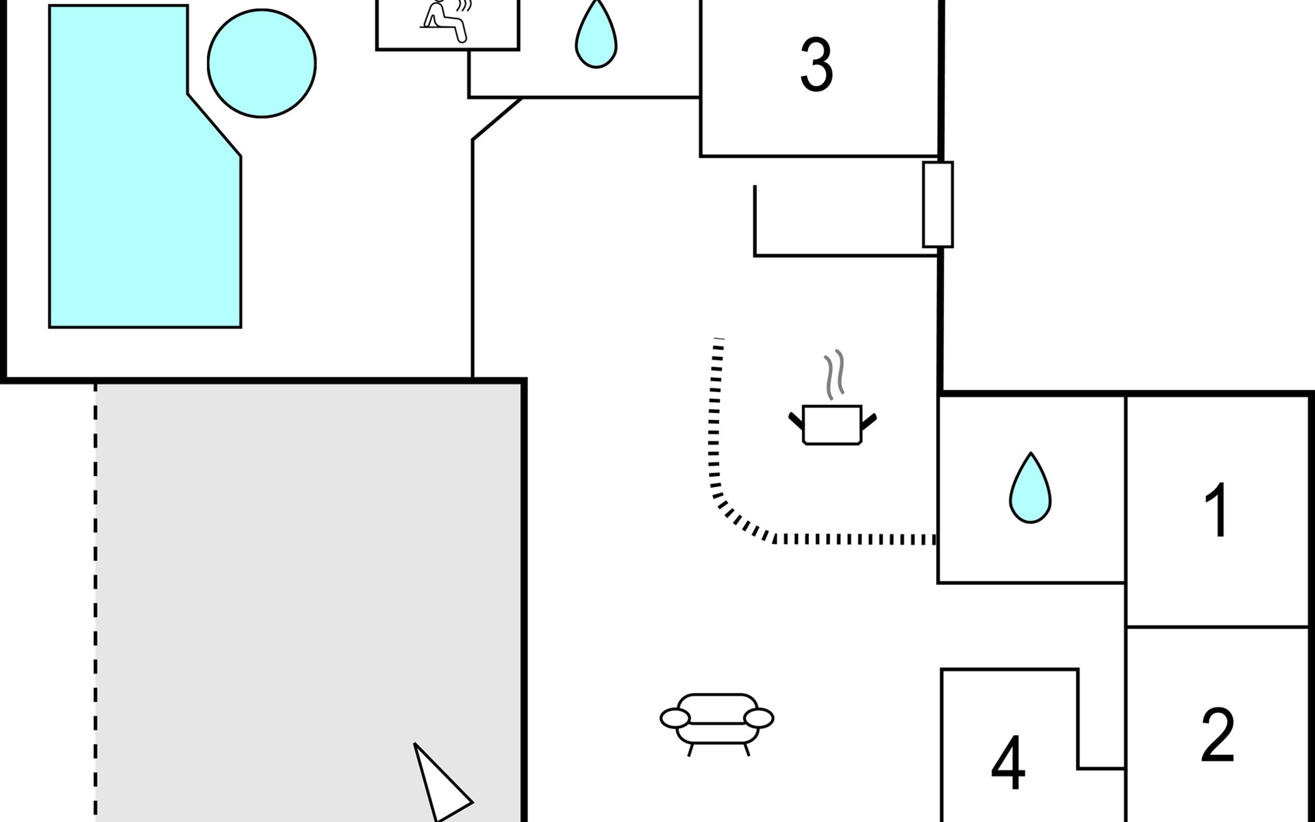 Es gibt zwei Schlafabteilungen, zwei Bäder und so eignet sich das Haus perfekt für zwei Familien. Jedes der vier Schlafzimmer ist mit TV und Receiver ausgestattet.