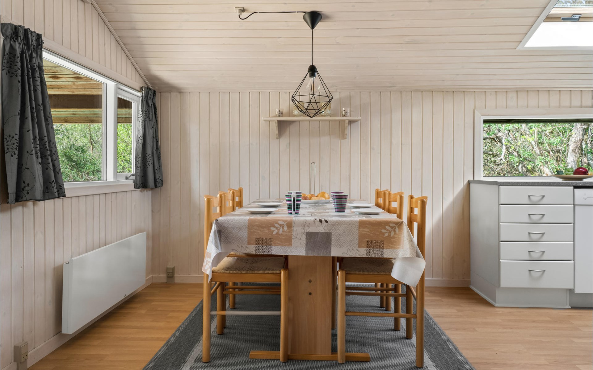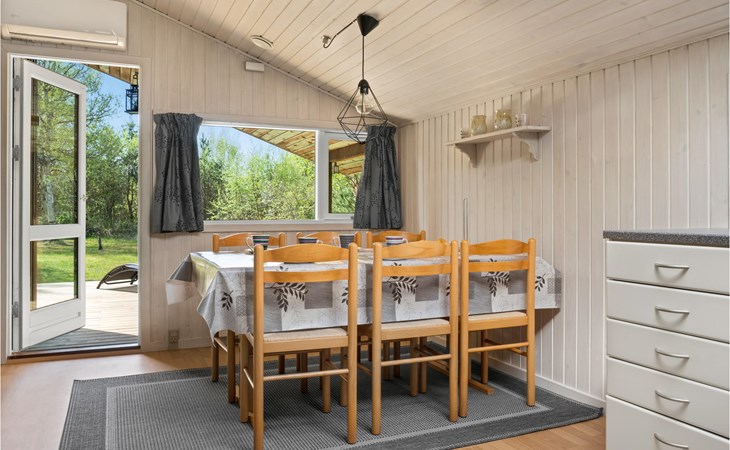 Freuen Sie sich auf einen ruhigen und erholsamen Urlaub in diesem angenehmen Ferienhaus, das Sie mit einer guten Ausstattung und Platz für gesellige Stunden bietet. Hier können Sie sich wohlfühlen, entspannen und leckere Mahlzeiten kochen. Genießen Sie auch die Sonnenstunden auf der schönen Terrasse und essen Ihre gekochten Speisen im Freien. Der Garten bietet viel Platz für Spiele, wie Federball, Kubb oder andere.