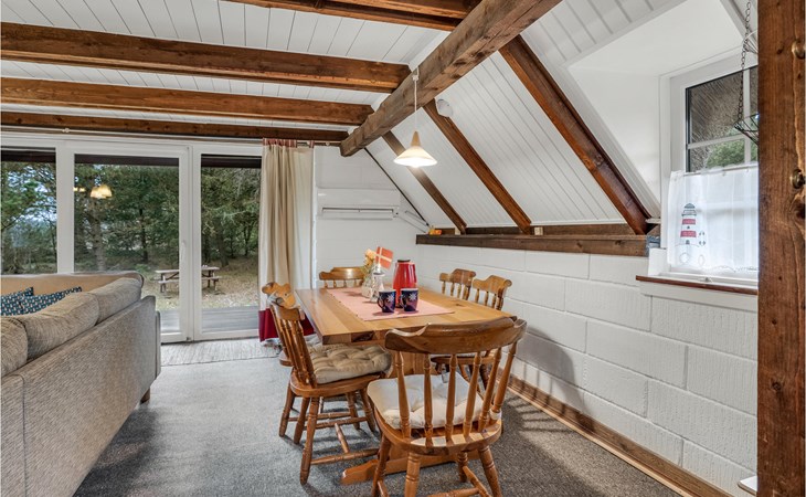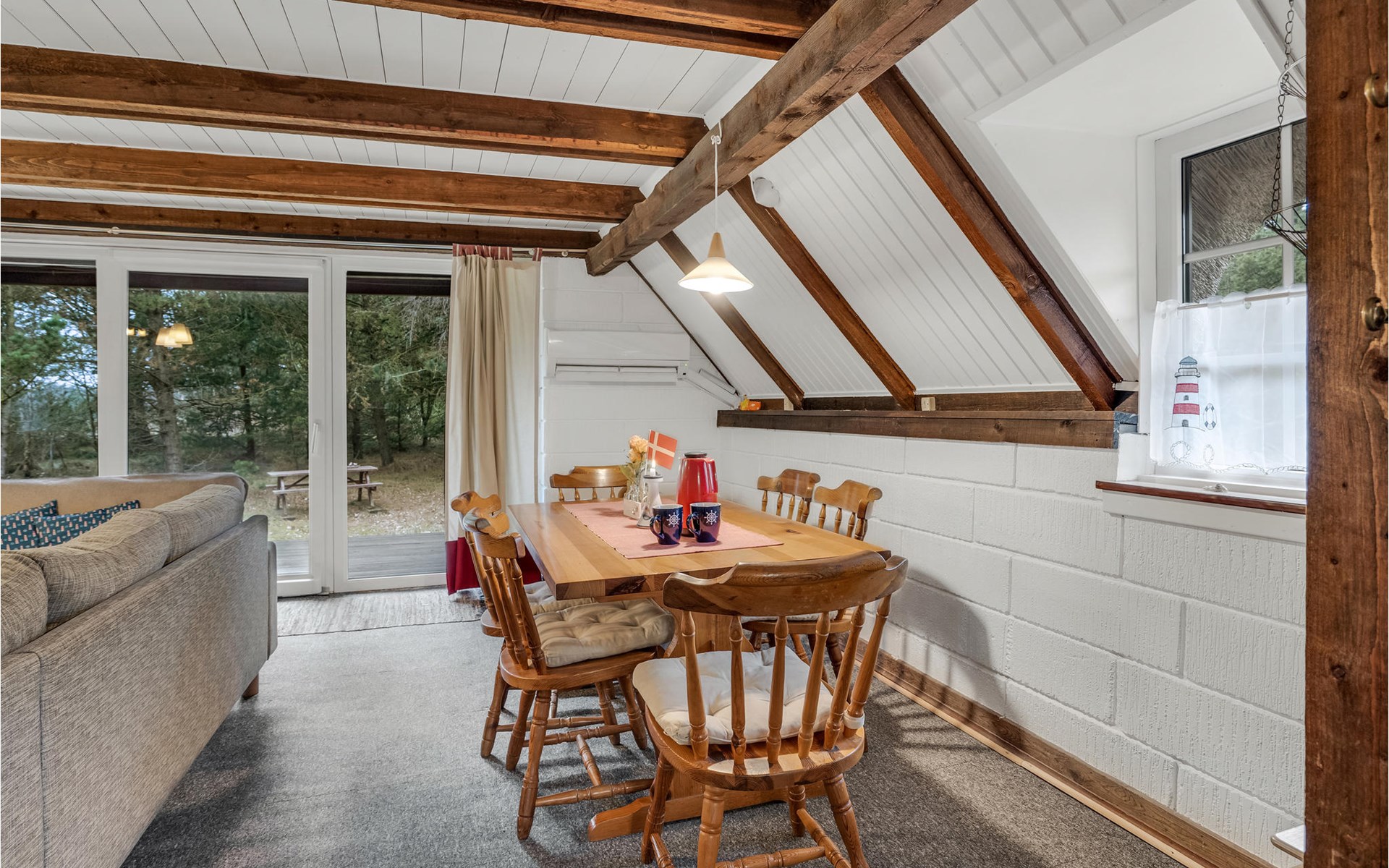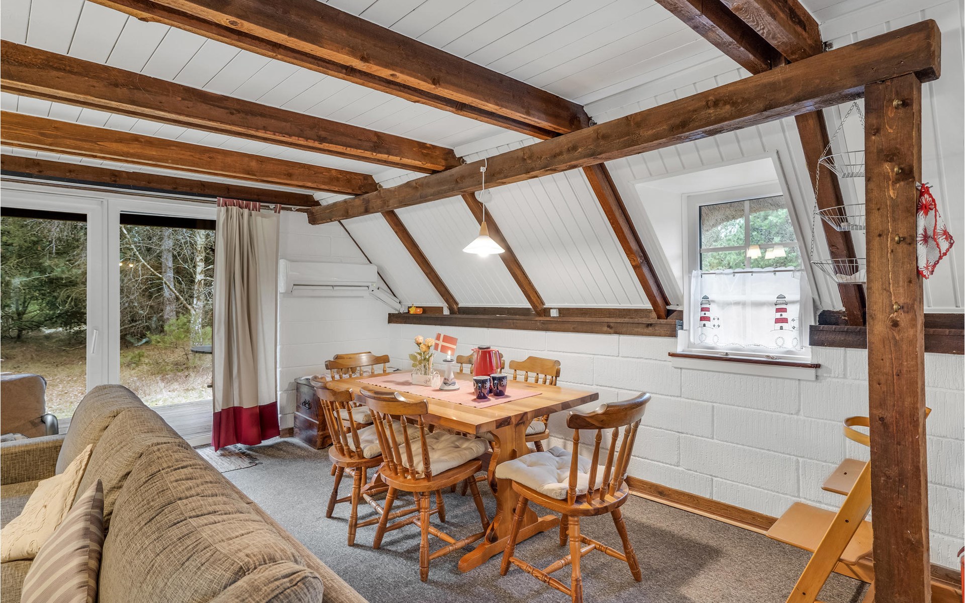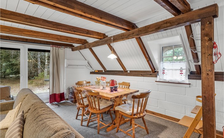 Das charmante, reetgedeckte Nurchdachhaus begrüßt Sie in schöner ruhiger Lage auf einem von Bäumen umgebenen Grundstück. Die ansprechenden Räume mit dekorativen Deckenbalken bilden den idealen Rahmen für eine schöne gemeinsame Zeit in wohnlichem Ambiente. Essen Sie mit herrlichem Blick ins Freie. Nach einem erlebnisreichen Tag lädt das Wohnzimmer mit dem bequemen Sofa zu einem Film- oder Spieleabend ein, hier können Sie noch lange gemütlich zusammensitzen, während die Flammen im Kaminofen prasseln.