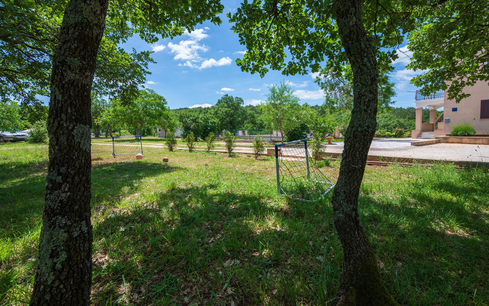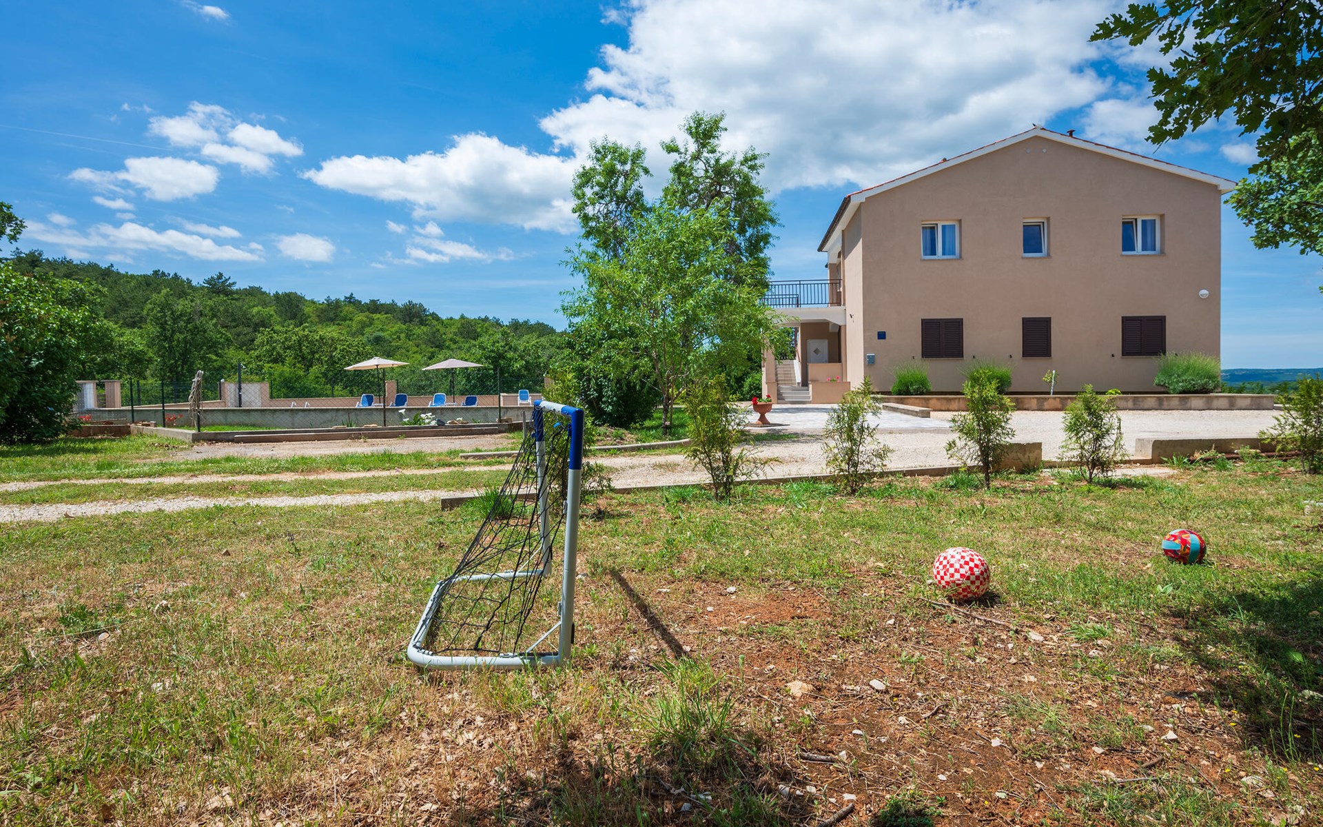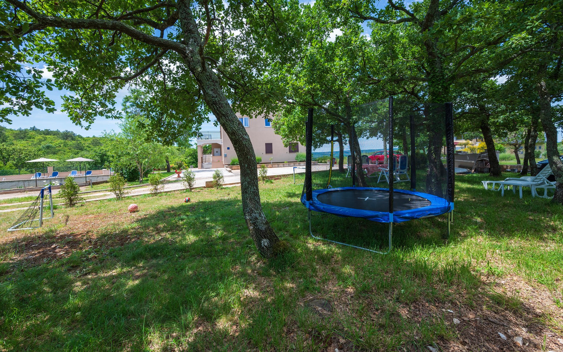 Ziehen Sie gleich morgens gemächlich Ihre Bahnen im Pool und lassen Sie die friedliche Atmosphäre bei einem Frühstück auf dem Balkon oder im Schatten der Bäume des gemeinsamen Grundstücks auf sich wirken. Tanken Sie Sonne, spielen Sie Badminton oder Fußball mit Ihren Kindern und entfachen Sie abends den Grill.