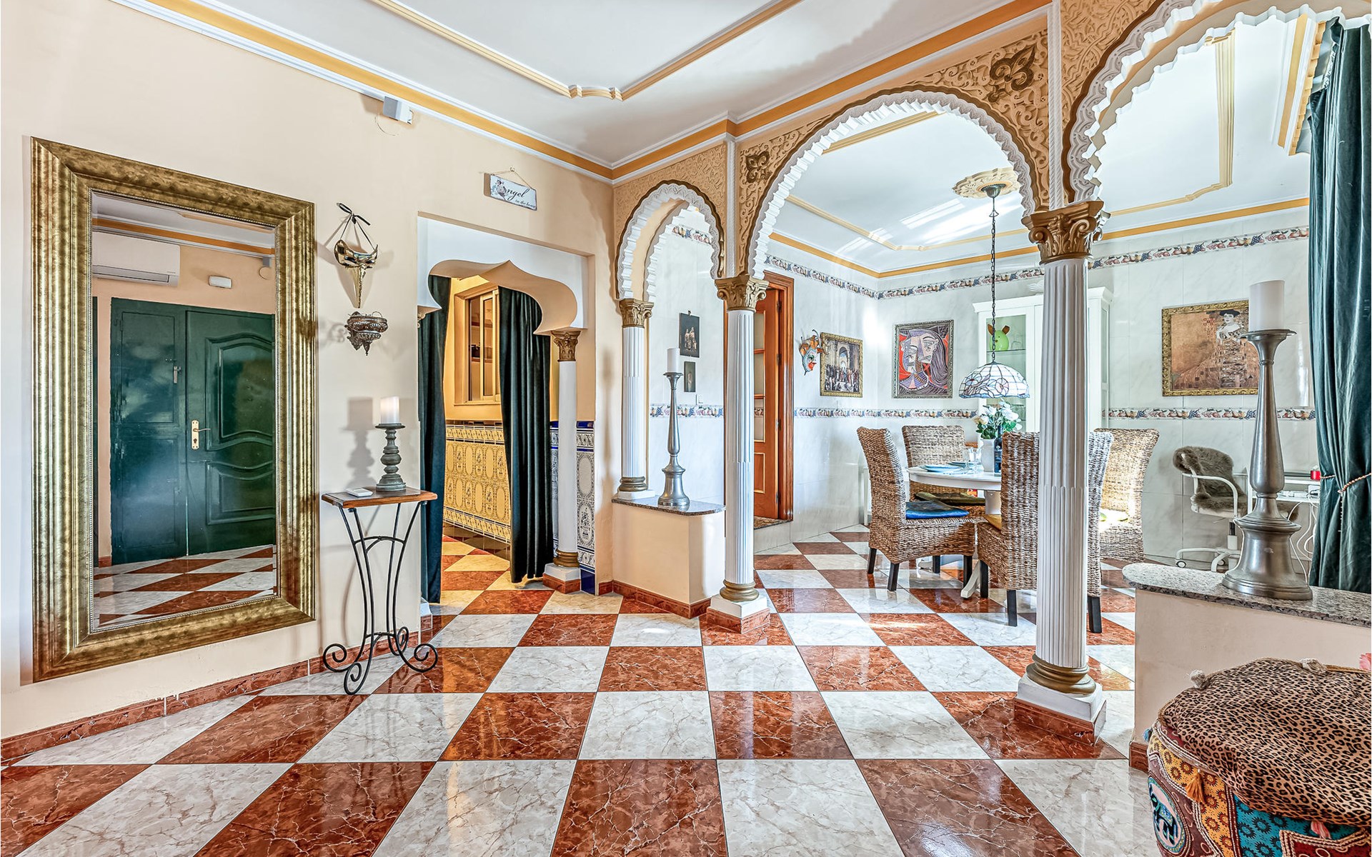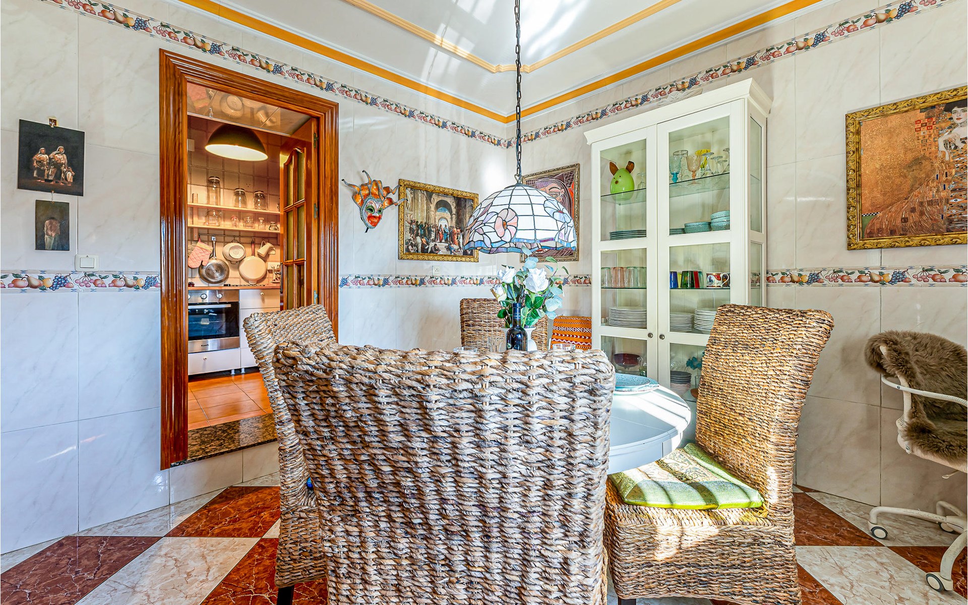 Wenige Kilometer von dem Sandstrand von Torre del Mar entfernt erwartet Sie dieses besondere Ferienhaus. Unterschiedliche Einrichtungsstile durchziehen die einzelnen Räume, sodass Sie in jedem Zimmer ein neues und detailreiches Interieur bewundern können. Fühlen Sie sich hier wohl und genießen Sie sowohl Eleganz als auch Gemütlichkeit. Die Wasserratten unter Ihnen werden sich über den sichtgeschützten Pool freuen und viele Stunden Badespaß im Wasser erleben. Sie haben aber auch eine große Terrasse, von der Sie bis hin zur Küste und das Meer blicken können. Verbringen Sie hier mit der gesamten Familie Zeit beim Spielen und Essen und bereiten Sie auf dem Grill lokale Köstlichkeiten zu.