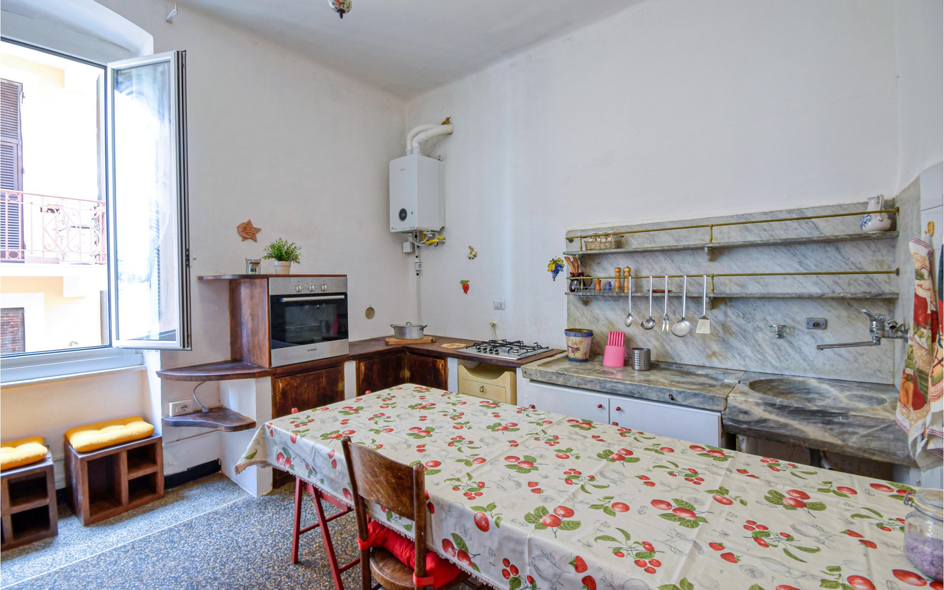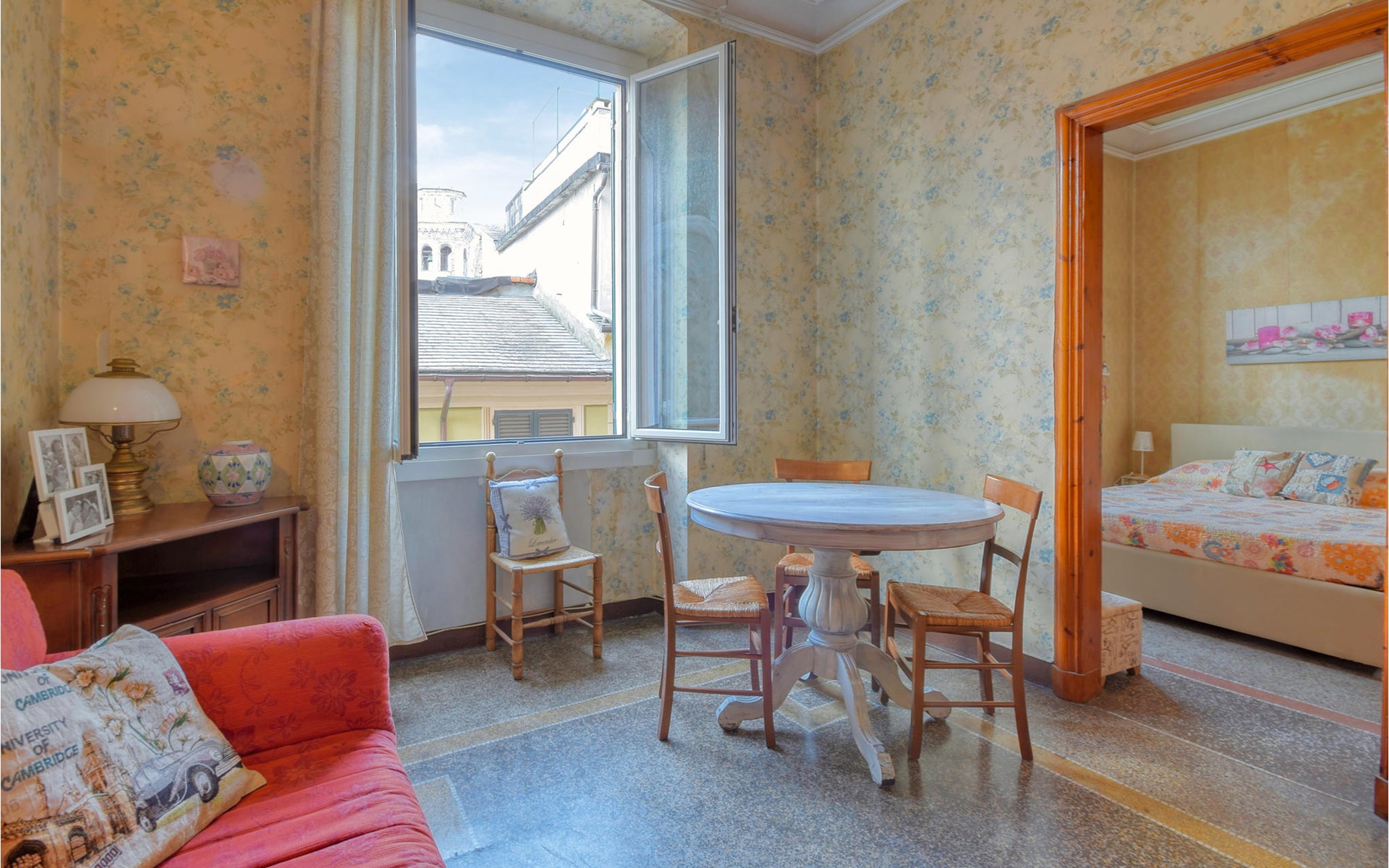 Die einladende Wohnung ist der ideale Ort für eine erholsame Auszeit in Ligurien, während der Sie jeden Tag die Nähe zum Meer genießen. Schon beim Betreten der hellen Räume mit geschmackvoller Einrichtung, geschickt platzierten Möbeln und interessanten Tapeten werden Sie sich wohlfühlen. Stärken Sie sich mit einem leckeren Frühstück am Esstisch im Wohnzimmer, wo Sie durch das Fenster der Stadt beim Aufwachen zusehen können, und planen Sie die Ausflüge und Unternehmungen für den Tag oder eine geruhsame Zeit am Strand.