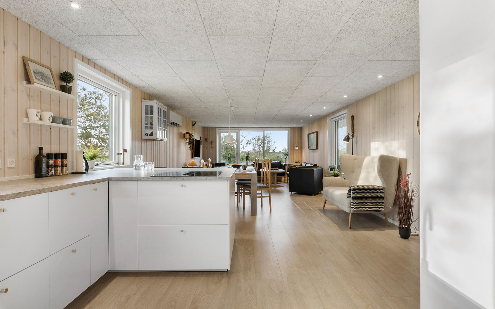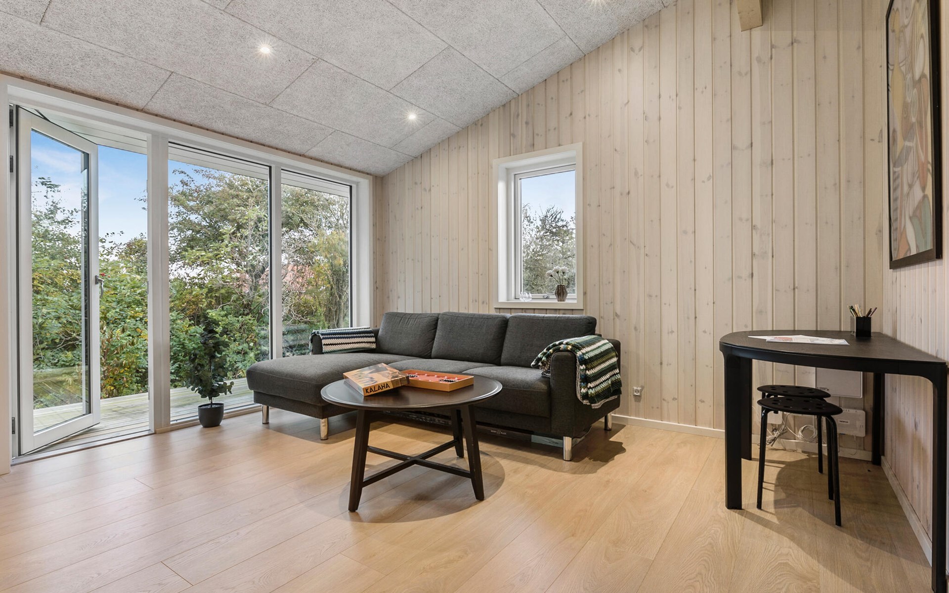Starten Sie Ihren Tag erholt nach einer ruhigen Nacht in der gut ausgestatteten Küche. Hier können Sie sich einen köstlichen Kaffee zubereiten und ein entspanntes Frühstück mit der Familie genießen. Die gemütliche Sofaecke lädt zu gemeinsamen Brettspielen oder zum Schmökern in einem guten Buch ein. Nutzen Sie auch den zweiten Wohnraum zum Entspannen, zum Beispiel bei einem guten Film.