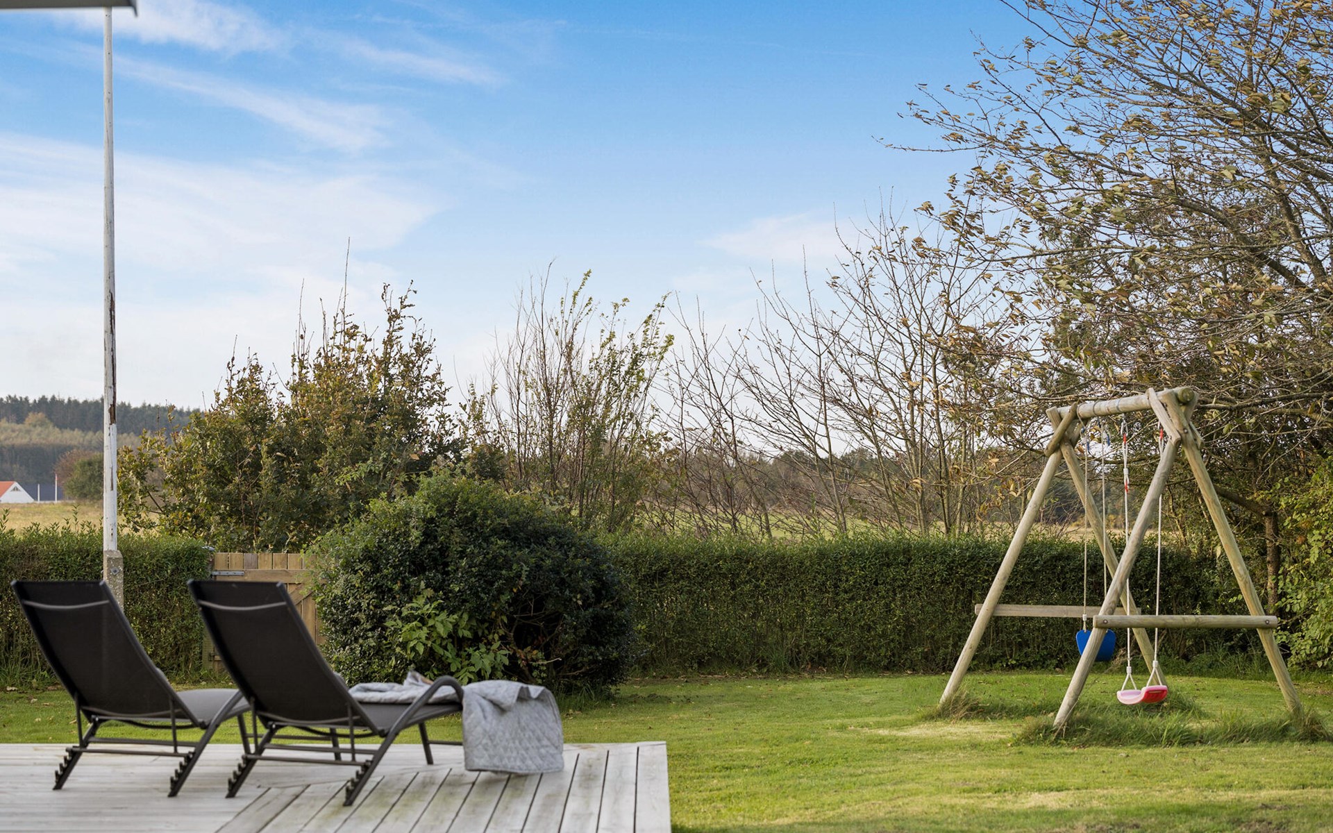 Alternativ können Sie die frische Luft auf der Terrasse auskosten, sich in den bequemen Sitzgelegenheiten zurücklehnen oder ein leckeres Barbecue organisieren und Ihre Mahlzeiten im Freien genießen. Im Garten finden die kleinen Urlaubsgäste zudem eine Schaukel, und die ganze Familie kann sich an der gemütlichen Feuerstelle versammeln.
