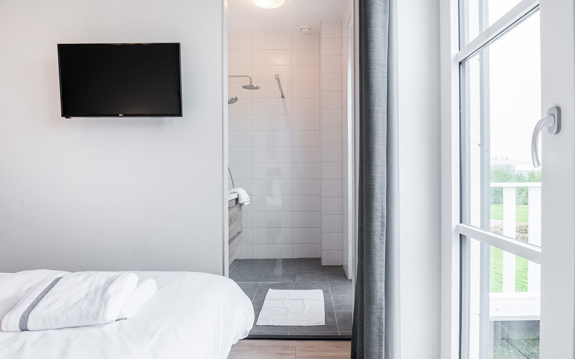 Auf dem Balkon mit Blick ins Grüne können Sie entspannte Stunden in exklusivem Komfort verbringen. Genießen Sie auf der mit anderen Gästen geteilten Dachterrasse einen herrlichen Blick auf die Landschaft der Umgebung und entspannen Sie nach Herzenslust in den beiden Saunen.