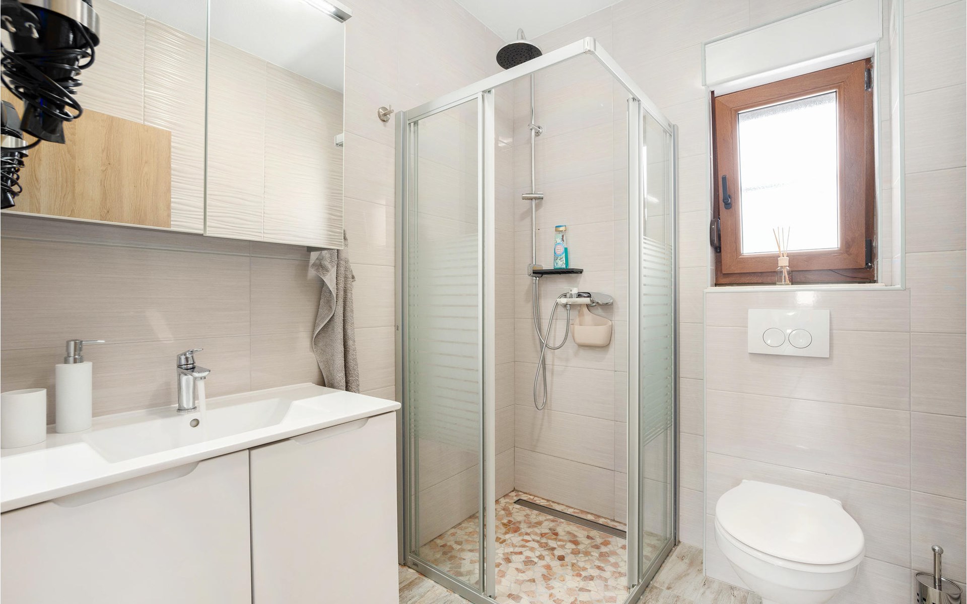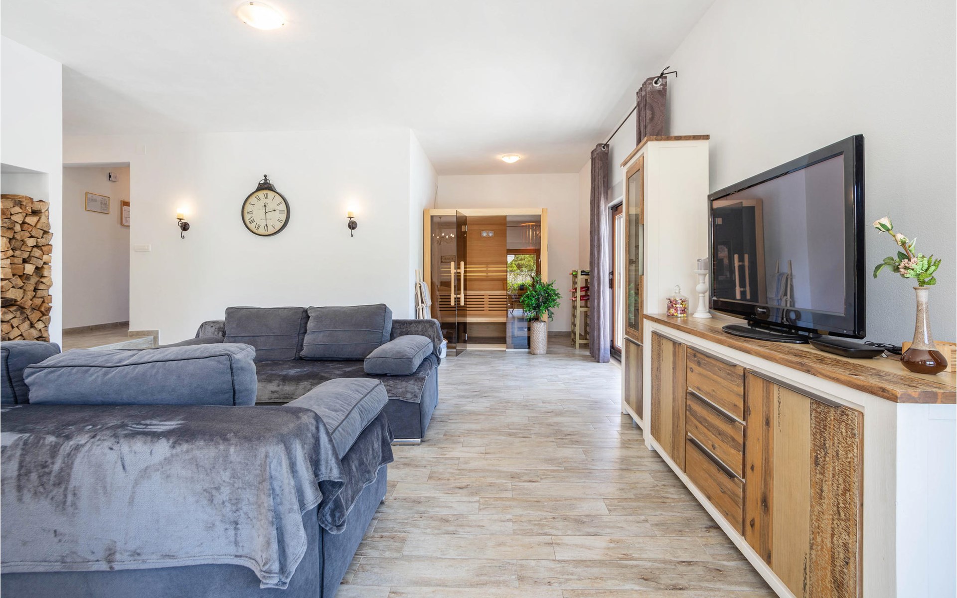 Mit 3 Schlafzimmern und 2 Bädern bietet es Platz für bis zu 6 Personen, 1 Haustier ist ebenfalls willkommen. In den modern gestalteten Räumen in ansprechenden Farben können Sie zu jeder Jahreszeit einen schönen Urlaub verbringen. An kühleren Abenden spendet der Kaminofen Wärme und schafft eine behagliche Atmosphäre.