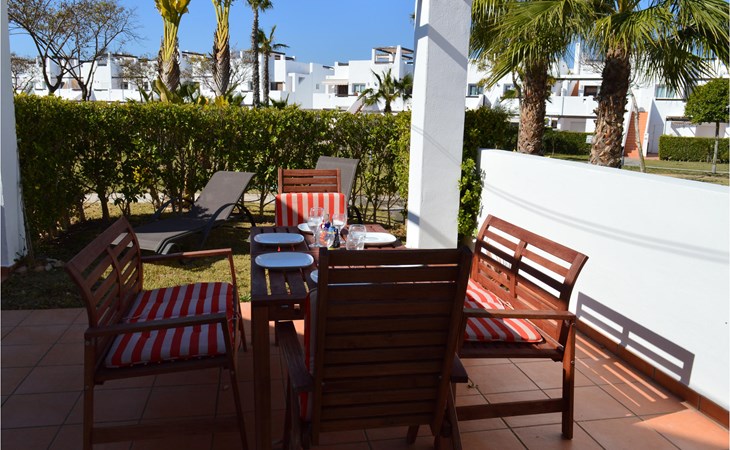 Diese schöne und gemütliche Ferienwohnung mit Gemeinschaftspool liegt im Erdgeschoss in der Urbanisation Condado de Alhama in Murcia.