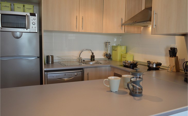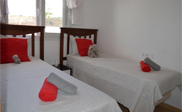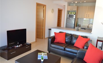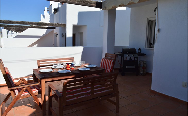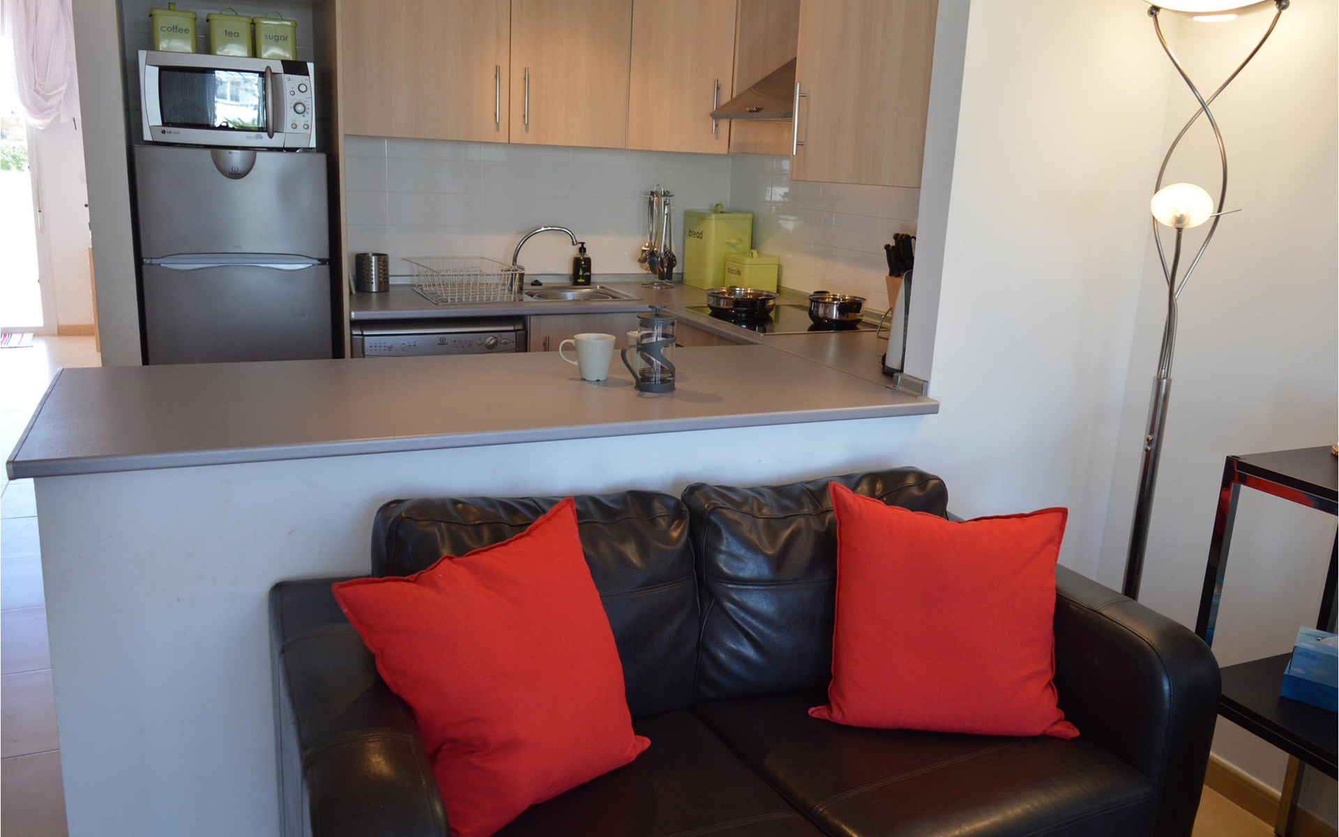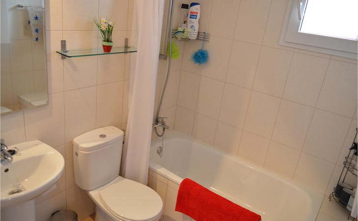Die Wohnung bietet Platz für 6 Personen. Es gibt 3 Schlafzimmer und 1 Badezimmer. Von der Wohnung haben Sie Blick auf den Gemeinschaftspool. Vor dem Haus befindet sich ein kleiner Garten, in dem Sie wunderbar grillen und auf den Liegestühlen entspannen können. Die Privatsphäre wird durch eine Hecke geschützt.