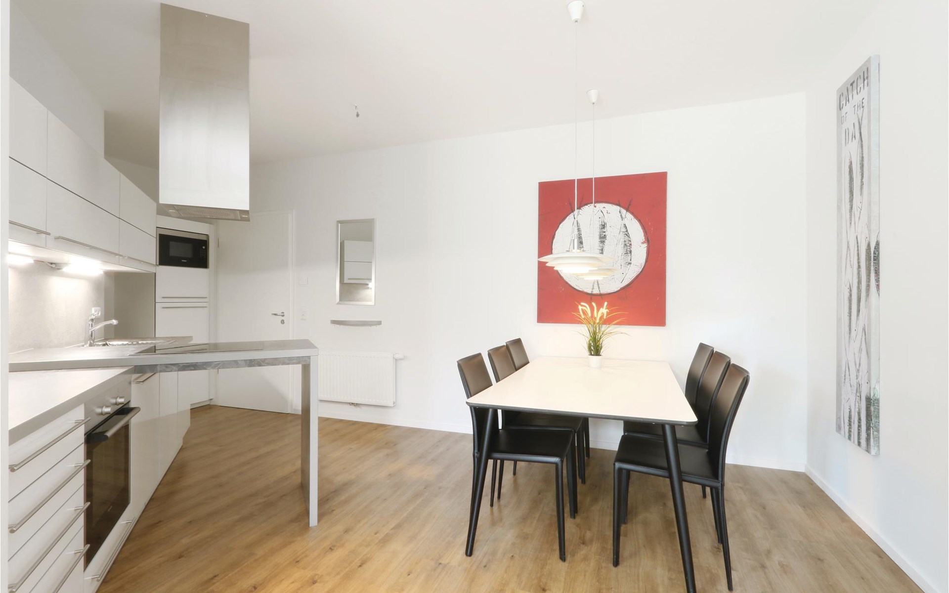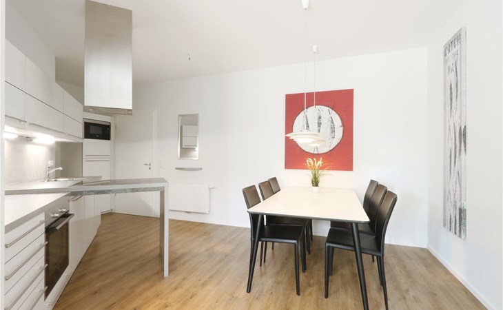 Die moderne Küchenzeile bietet ausreichend Platz zum Kochen und ist mit hochwertigen Markengeräten ausgestattet. Hier finden Kaffeeliebhaber eine Nespresso-Maschine (Kapseln bitte selbst mitbringen), sowie Thermoskanne und Handfilter zum Selbstbrühen, falls Sie doch den klassischen Filterkaffee bevorzugen.