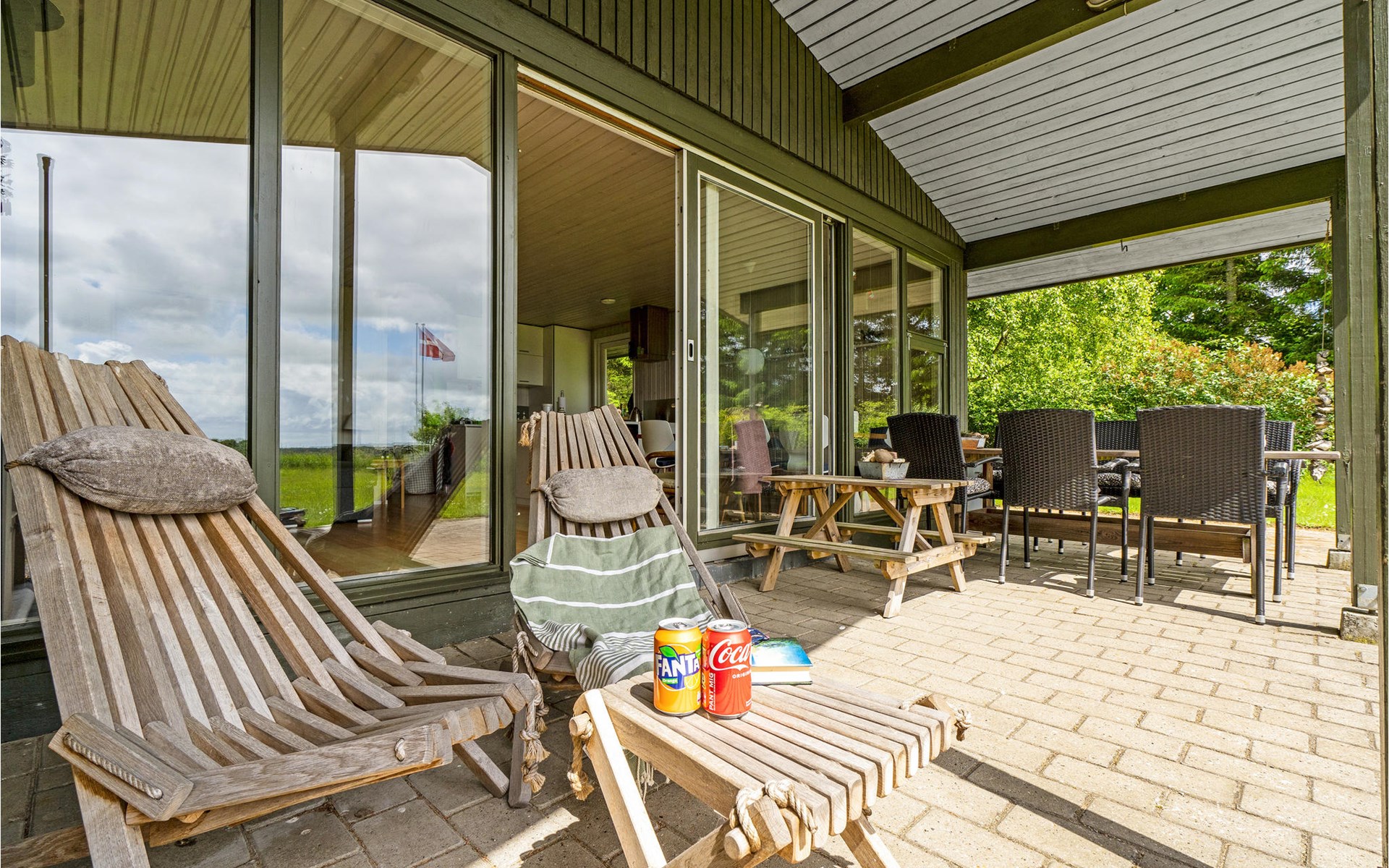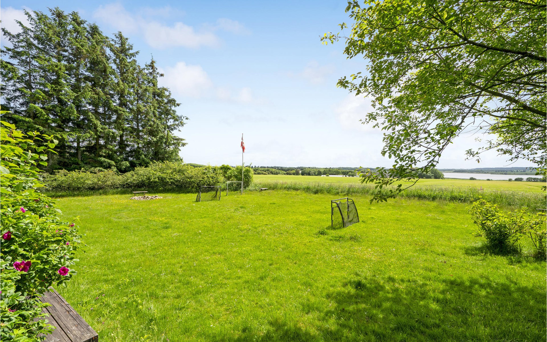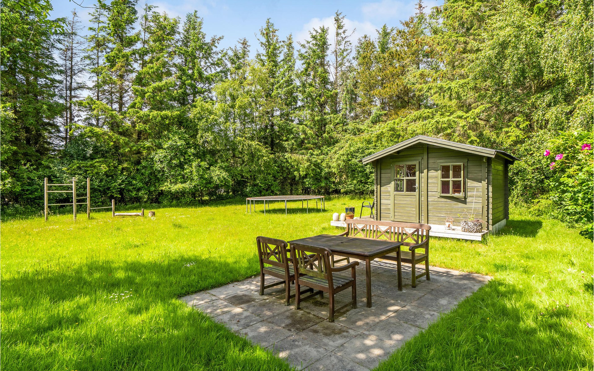 Hübsches Ferienhaus auf großem Grundstück in der Nähe des Strandes.