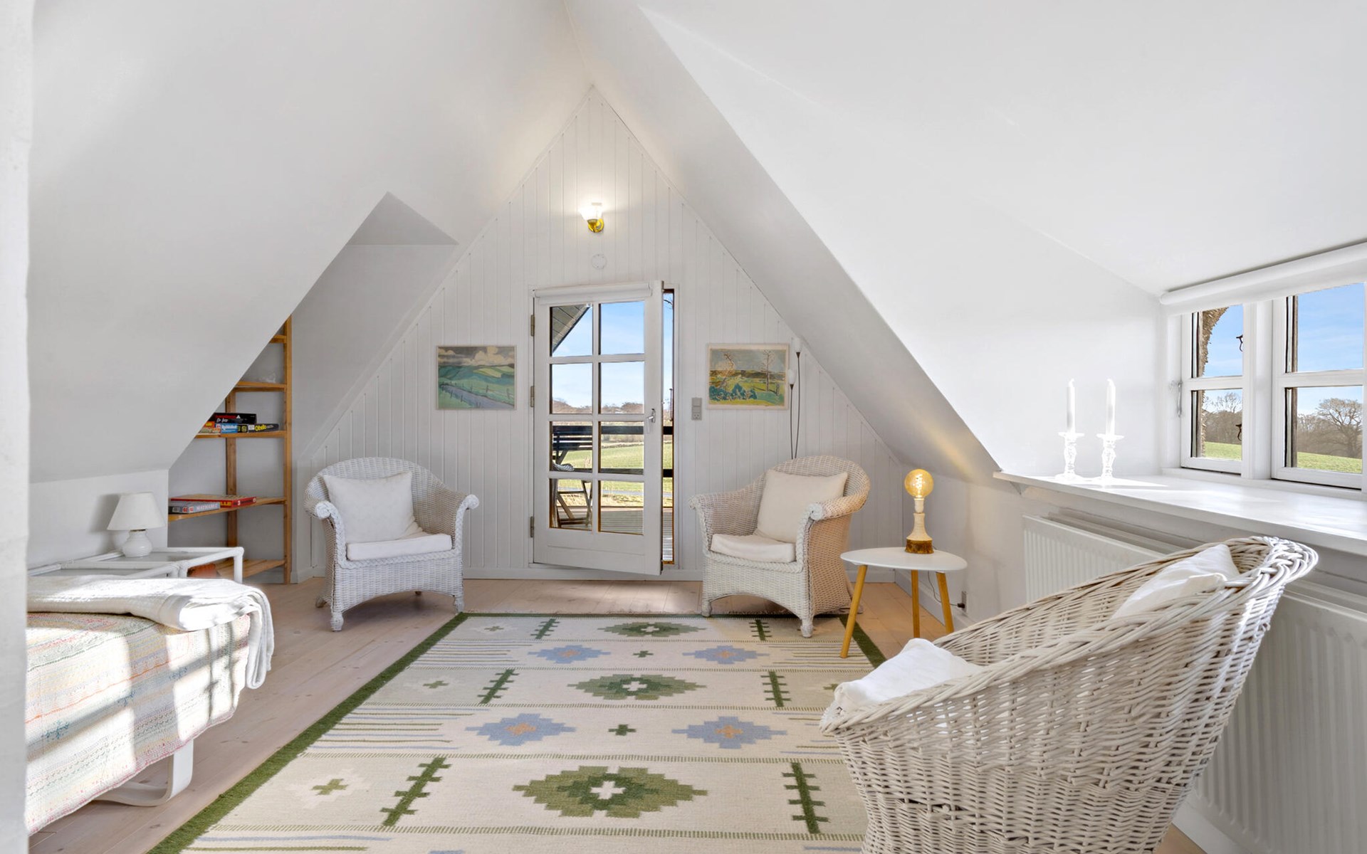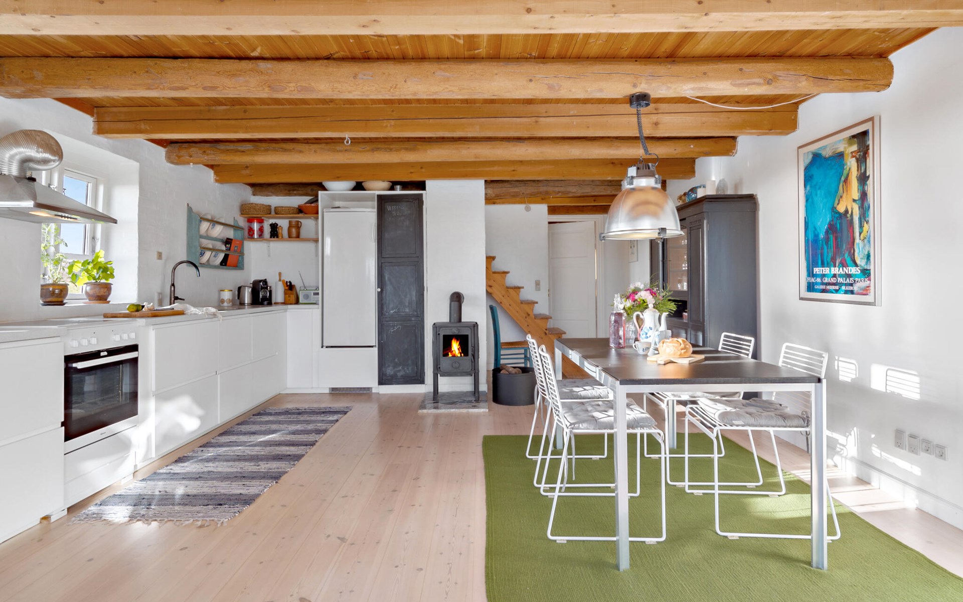 Mit Blick auf die Kalö Bucht empfängt Sie diese ansprechende Wohnung auf zwei Etagen. Fühlen Sie sich hier wie zuhause und entspannen sich in dem wohnlichen Ambiente, das Ihnen im Erdgeschoss eine offene Wohnküche mit anschließendem Wohnzimmer bietet, die Ihnen den perfekten Ort für gesellige Stunden mit gutem Essen und Blick nach draußen verspricht. Trinken Sie am Morgen auf dem Balkon Ihren Kaffee und machen im Kopf Pläne für Ihre nächsten Ausflüge. Entdecken Sie auch den Garten, mit einer Feuerstelle, Tischtennis und Platz zum Spielen auf dem Rasen.