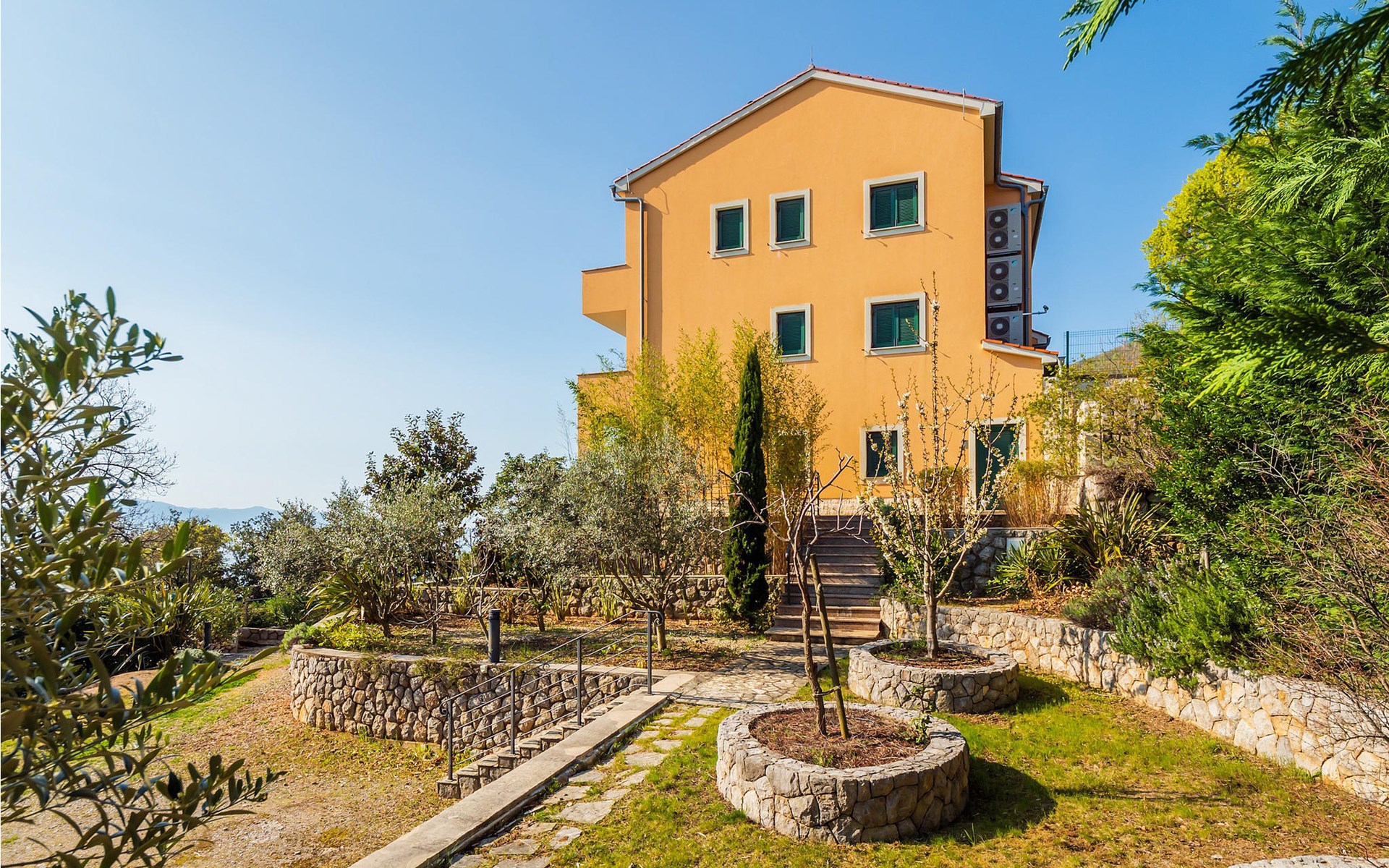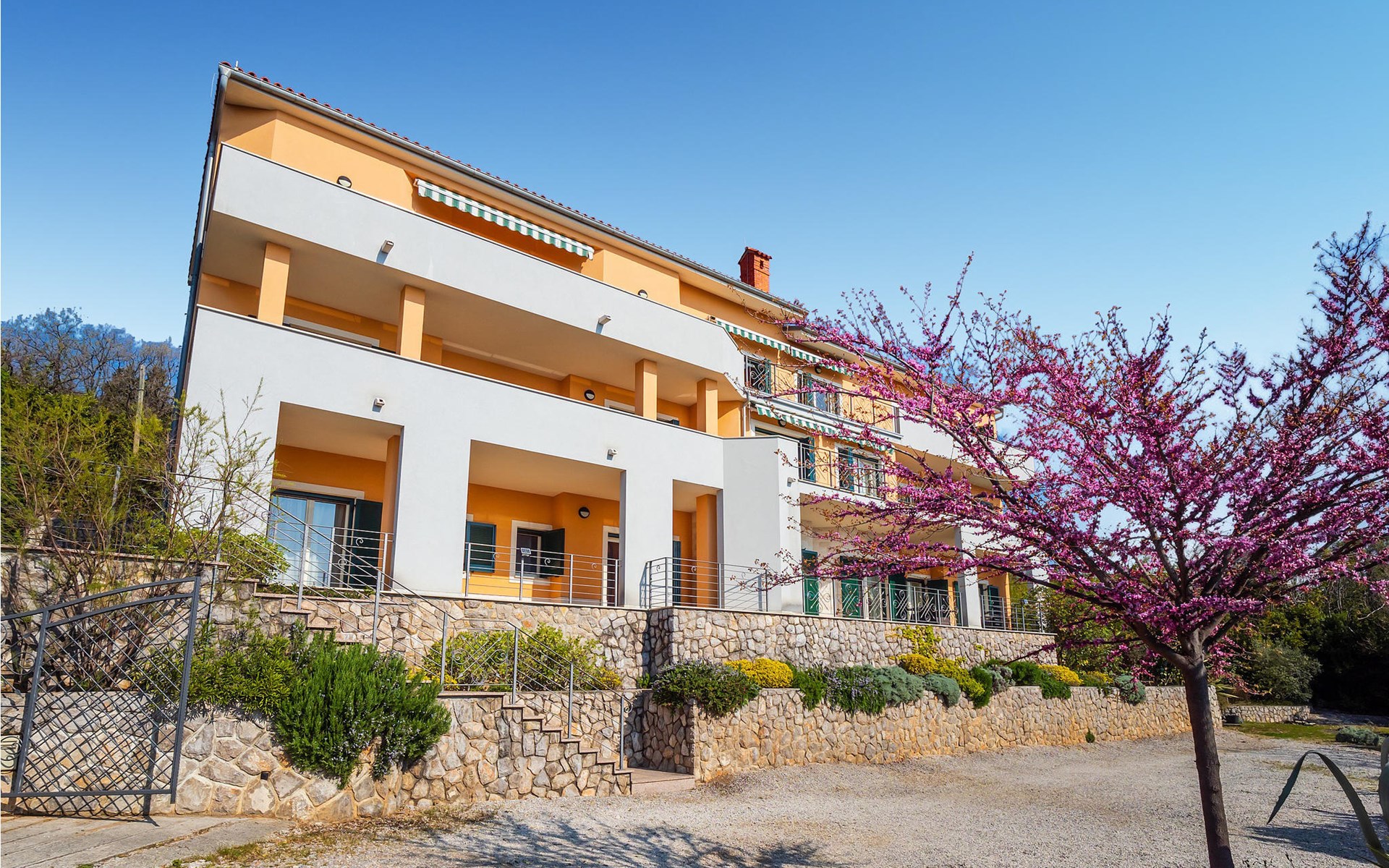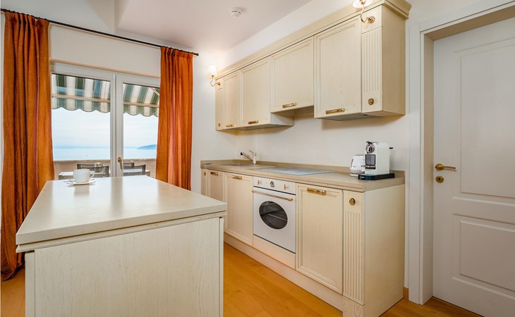 Schlendern Sie die paar Schritte zum Meer und genießen Sie das klare Wasser am Kiesstrand oder der Felsenküste. Fahren Sie nach Opatija und lassen Sie sich von den prächtigen Villen aus dem 19. Jahrhundert verzaubern, die von der Geschichte der charmanten Küstenstadt als Kurort berichten.