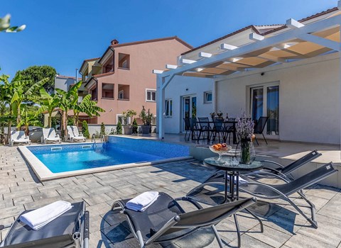 Die Räume sind über 3 Etagen verteilt. Im Erdgeschoß befindet sich ein offener Wohn- und Essbereich mit einem Kamin, der von bequemen Sofas und Sesseln umgeben ist. Hier finden Sie auch eine elegante Küche mit Kochinsel, sowie ein Schlafzimmer mit einem Doppelbett und einem Badezimmer en suite. Sowohl von der Küche als auch vom Schlafzimmer hat man einen direkten Zutritt auf die einladende Terrasse, auf der Sie einen gemütlichen Lounge- und Essbereich finden werden. Weitere 2 Schlafzimmer sind über die obere Etage verteilt, jeweils mit einem Doppelbett und einem Badezimmer en suite. Ein Schlafzimmer führt direkt auf den Balkon, von dem Sie jeden Morgen den atemberaubenden Blick genießen können. Das Untergeschoss ist in zwei Einheiten aufgeteilt. In einer befindet sich eine gemütliche Taverne mit offenem Kamin und großem Esstisch. In der zweiten stehen Ihnen ein Spielzimmer, sowie ein kleiner Fitnessraum und ein weiteres Bad zur Verfügung. Die große Glaswand führt von diesem Bereich auf die wunderschöne Poolterrasse, mit zauberhafter Aussicht über die Landschaft. Im geräumigen, sorgfältig gepflegten Garten ist auch ein gemauerter Grill vorhanden, auf dem Sie eine eigene Version der traditionellen Spezialitäten zubereiten können. Egal ob Sie die Region besichtigen, die regionale Gastronomie und Kultur genießen oder einfach mit Ihrer Familie und Ihren Freunden entspannen wollen, wird die Villa Brazzana keine Wünsche offen lassen.Die luxuriöse Villa Brazzana liegt im friedvollen Dörfchen Pracana in unmittelbarer Nähe von Buzet, im Herzen Istriens. Zentralistrien ist für seine kleinen, pittoresken, mittelalterlichen Städtchen, sowie traumhaft schöne hügelige Landschaft bekannt. Der alte, historische Stadtkern von Buzet besitzt eine wunderschöne Hanglage über dem fruchtbaren Tal des längsten Flusses Istriens, der Mirna. Heute ist Buzet weithin bekannt als die Stadt der Trüffel, da die Wälder entlang der Mirna besonders reich an diesen hochgeschätzten Pilzen sind. Mit seiner Verflechtung von hervorragender Küche, exquisiten Malvasia- und Teransorten, reichem kulturhistorische Erbe und atemberaubender Naturschönheit ist diese Region das perfekte Reiseziel für ein echtes Erlebnis des traditionellen Istriens.