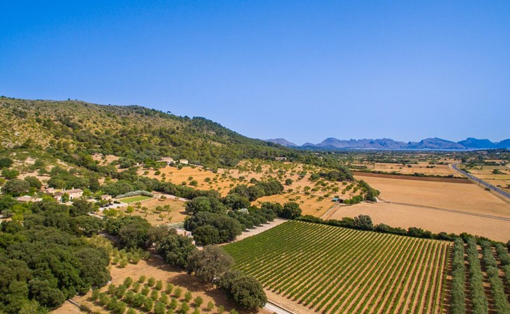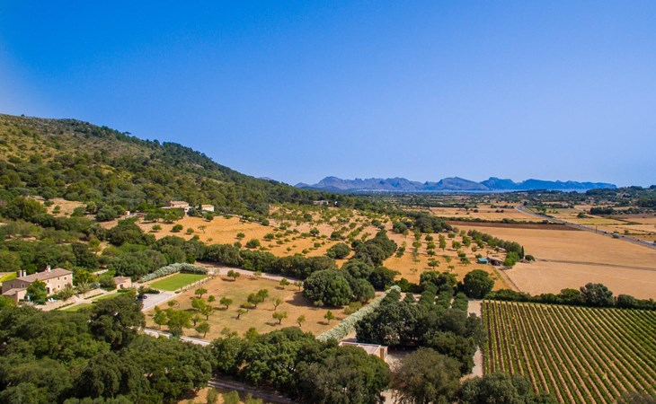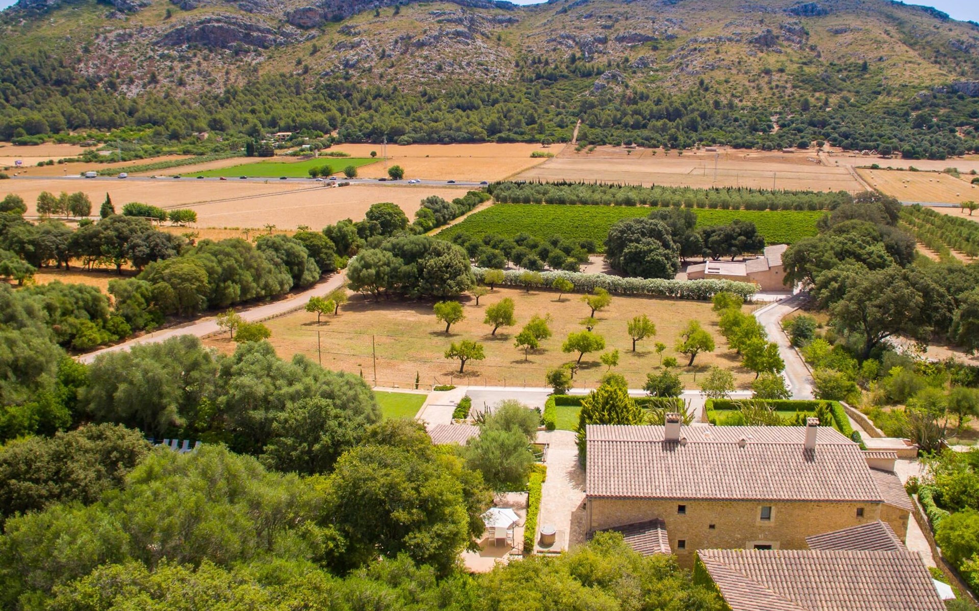 Wohnen zwischen Weinbergen auf unglaublichen 35 Hektar Land: „Son Simó Vell“, ein prächtiger Agrotourismus mit Hotelcharakter in klarem, modernem Stil, bietet exklusive und naturnahe Ferien in den Ausläufern der Serra de Tramuntana. Nach Alcúdia und Pollença zum Einkaufen und Bummeln sowie zu den dazugehörigen Häfen und Stränden wie San Pere, Es Barcarés oder dem Hidropark sind es nur wenige Kilometer. Frische Produkte und Wein erhalten Sie direkt auf dem Anwesen oder auf dem Wochenmarkt von Sa Pobla.