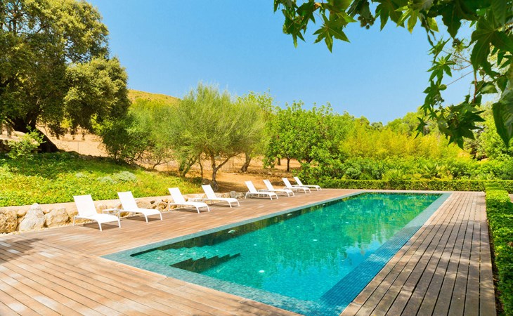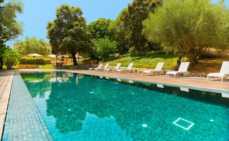 Der Agrotourismus „Son Simó Vell“ ist ein typisch mallorquinisches Wein- und Landgut und bietet Gruppen anspruchsvoller Gäste eine großzügige Finca mit separaten Wohneinheiten, vielen Extras und einem parkähnlichen Gelände. Ländliches Erbe und höchster Komfort haben hier eine harmonische Balance gefunden. Zwischen Oliven- und Mandelbäumen, Weinreben und uralten Steinen finden Sie einen herrlichen, 16 Meter langen Pool, zahlreiche idyllische Plätze zum Verweilen und sogar 3.000 Jahre alte Reste aus der Talayot-Kultur. Wanderwege führen direkt in die mallorquinische Bergwelt oder zur Bodega mit ihren großen Holzfässern, die nur wenige Schritte vom Haupthaus entfernt liegt. Als ideale Begleitung zu Ihrem Barbecue bieten wir Ihnen einen Merlot, Cabernet Sauvignon oder Syrah aus unseren eigenen Trauben an – ein Genuss, der selbst Weinkenner überzeugt.