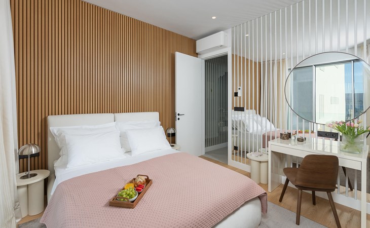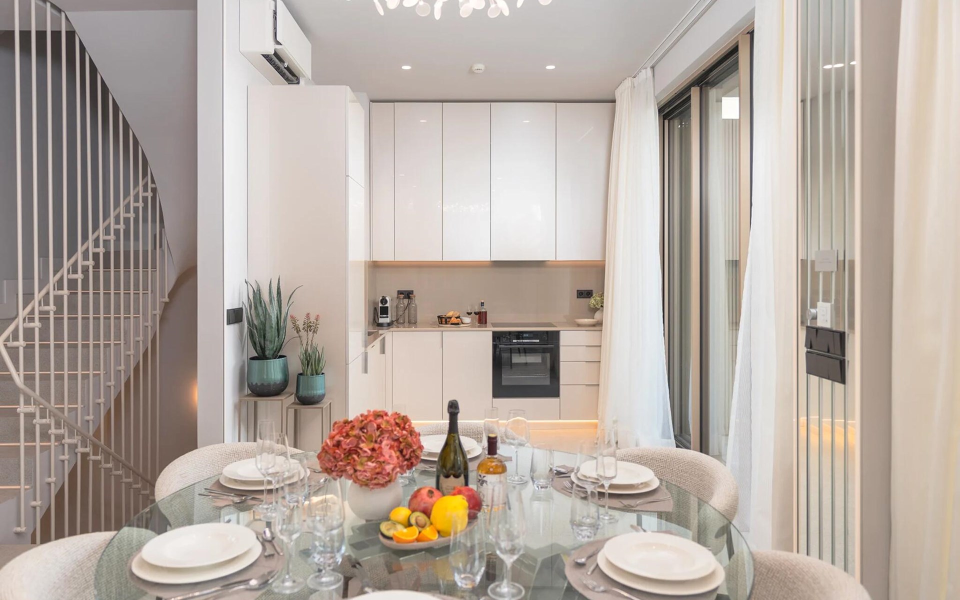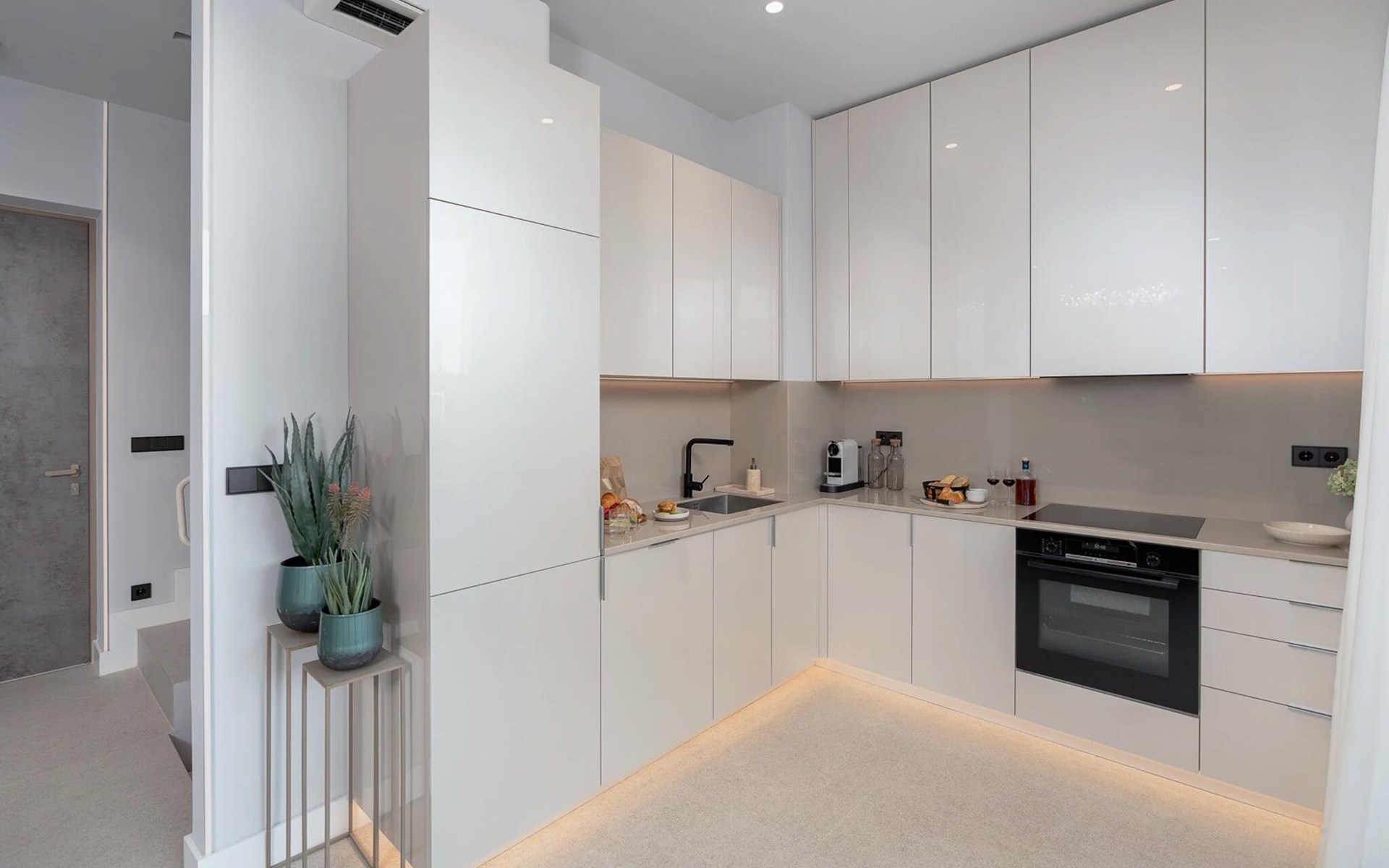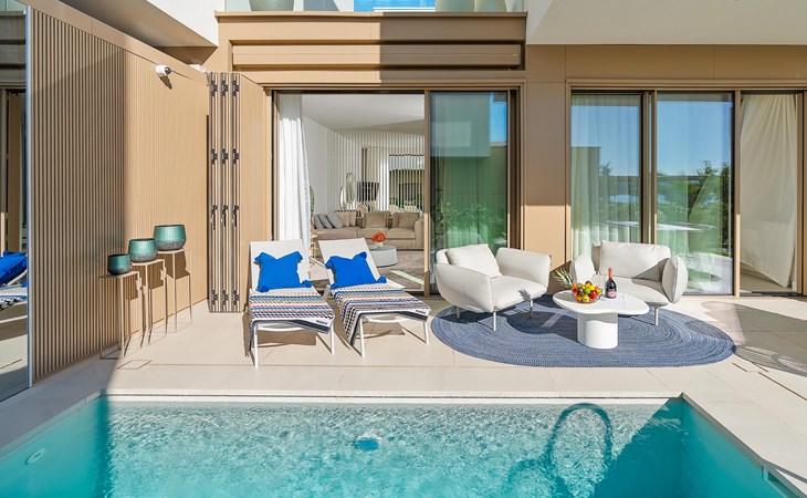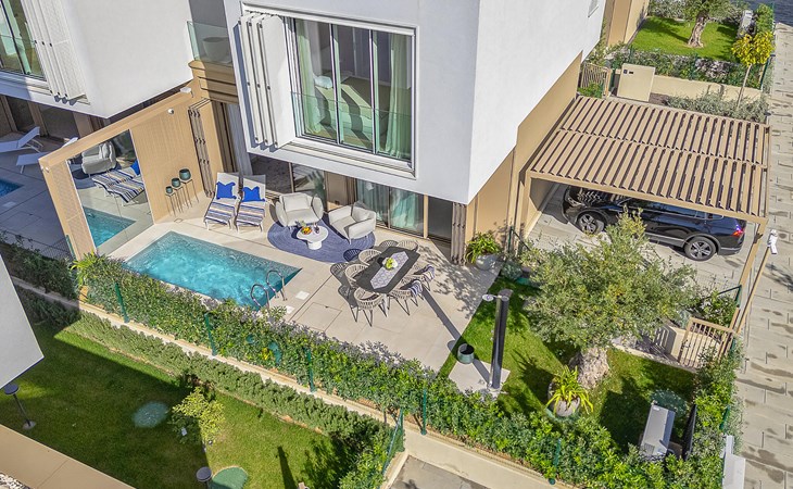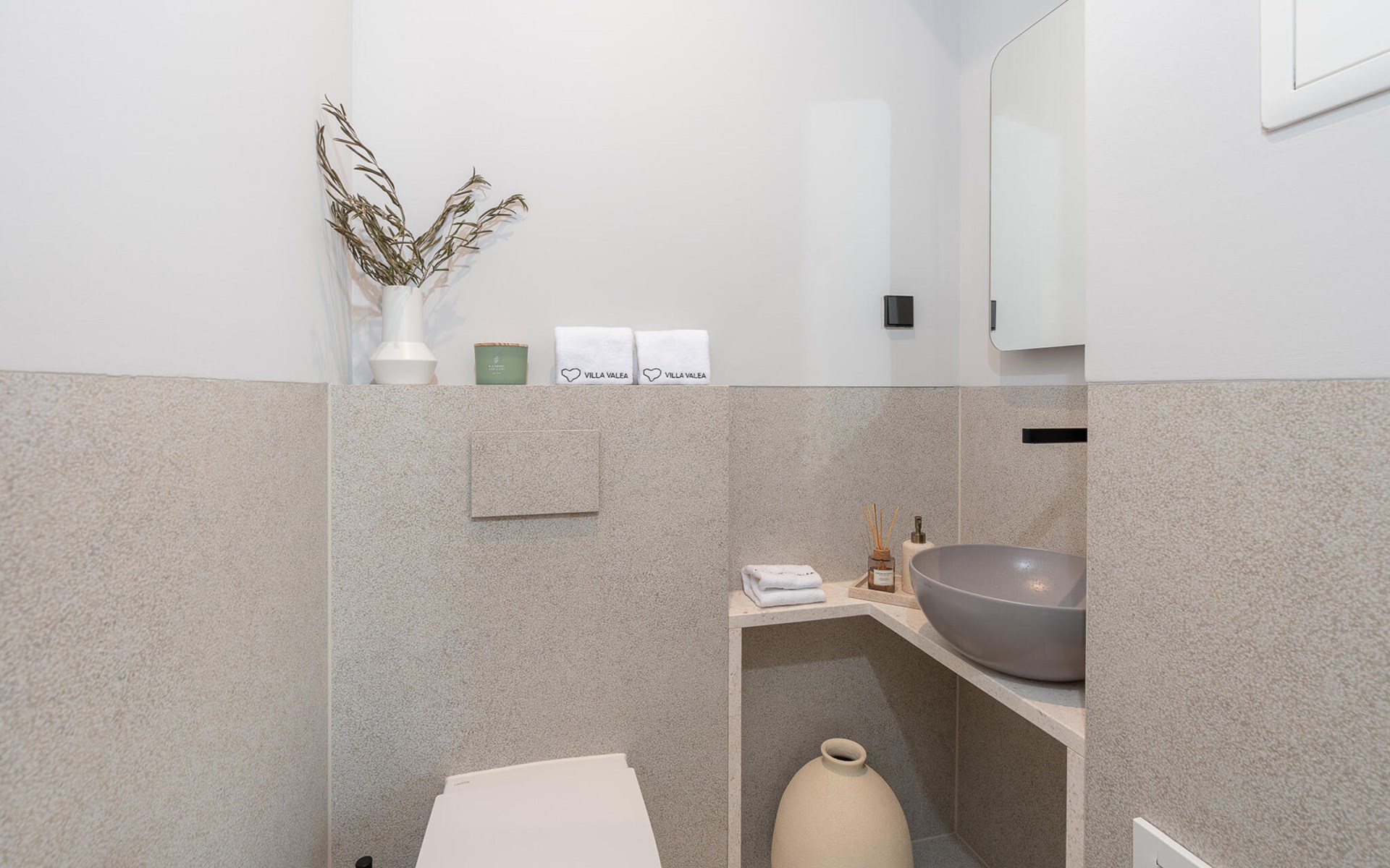 Die sonnige Terrasse mit komfortablen Liegen und einladenden Sitzmöglichkeiten verwandelt sich abends in eine stimmungsvolle Oase. Gönnen Sie sich an warmen Sommernächten ein entspannendes Bad im Salzwasserpool, streamen Sie am Außenfernseher einen Film und nehmen Sie zum Plaudern bei einem Grillabend neben dem Olivenbaum Platz.