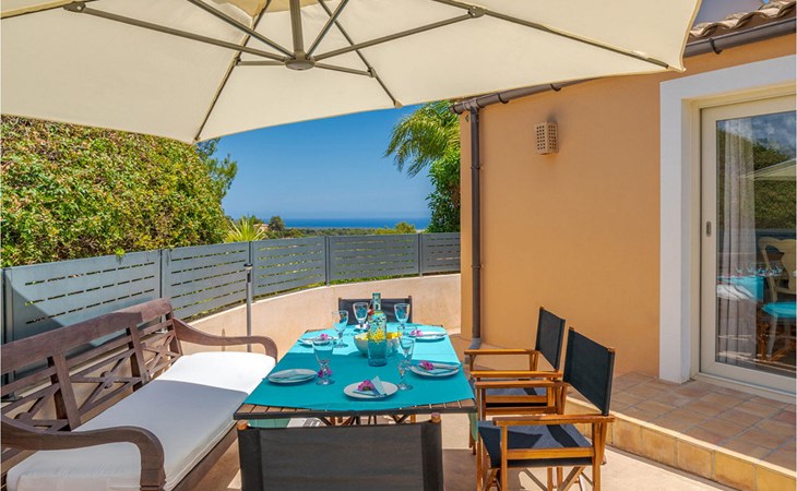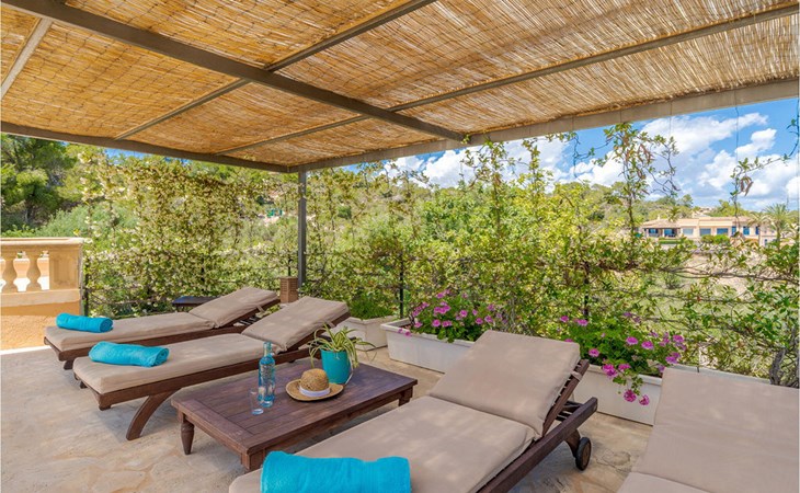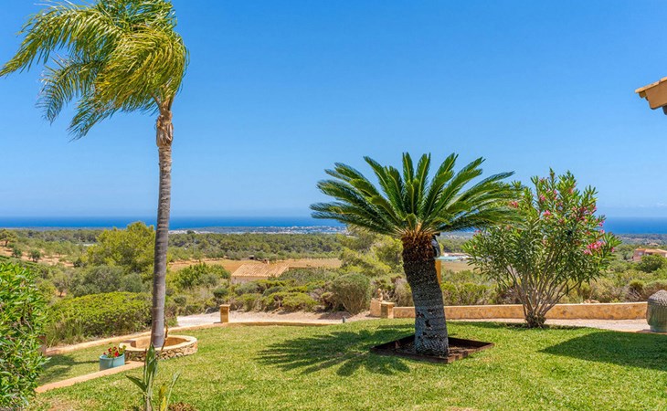 Freuen Sie sich auf einen bezaubernden Panoramablick in der terrakottafarbenen Finca "Es Socorrat". Hier erwartet Sie eine sonnige und erholsame Auszeit im wunderschönen Süden Mallorcas.