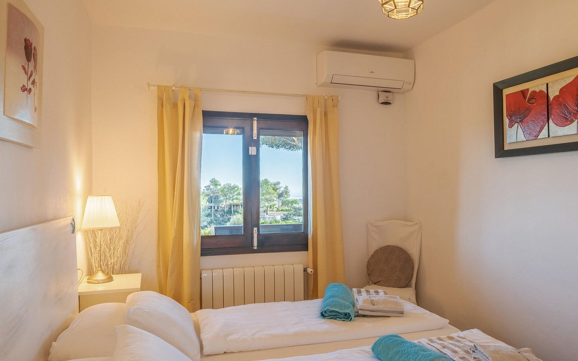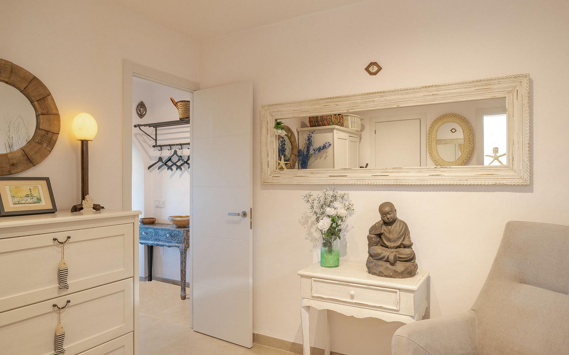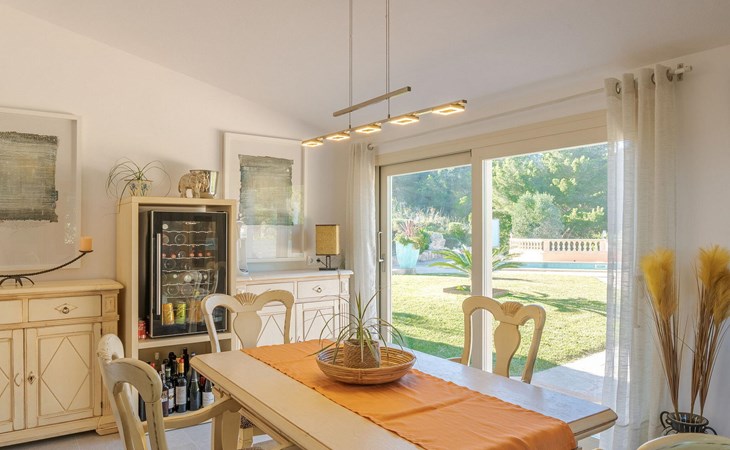 Beim Betreten von „Es Socorrat“ werden Sie von einer warmen und einladenden Atmosphäre begrüßt. Ihr Domizil verfügt über eine Mischung aus modernen Möbeln und charmanten Details im Landhausstil. Weiße Wände, Fliesenböden und helle Deckenbalken sorgen für ein angenehmes Wohngefühl. Große Fenster füllen den Raum mit Licht und bieten atemberaubende Ausblicke. Die Aufteilung umfasst einen Essbereich mit fantastischem Meerblick, ein separates Esszimmer und ein gemütliches Wohnzimmer. Die offene Küche ist mit allen notwendigen Annehmlichkeiten für die Zubereitung köstlicher Mahlzeiten ausgestattet. Die Unterkunft verfügt über drei wunderschön eingerichtete Schlafzimmer und zwei moderne Badezimmer, die für einen komfortablen Aufenthalt sorgen.