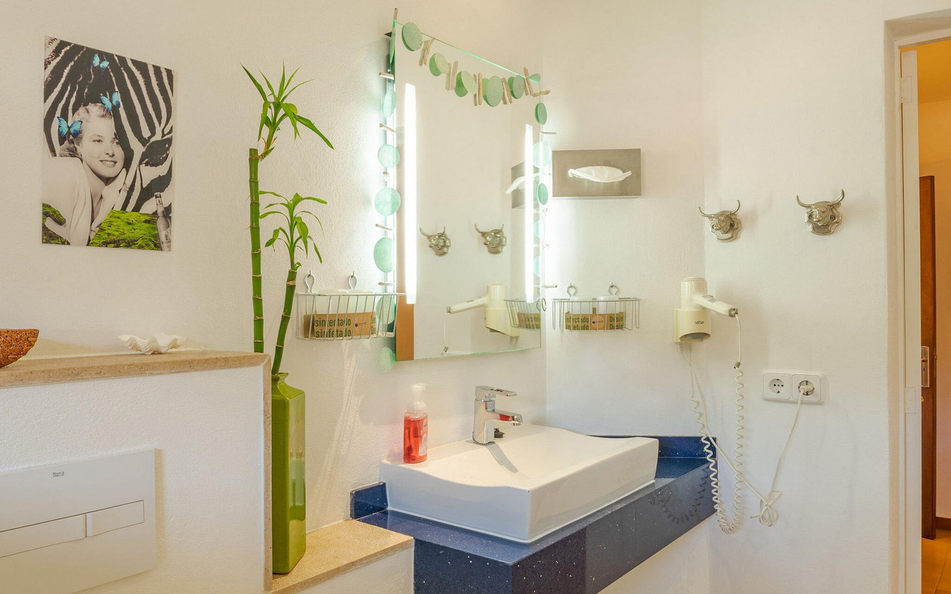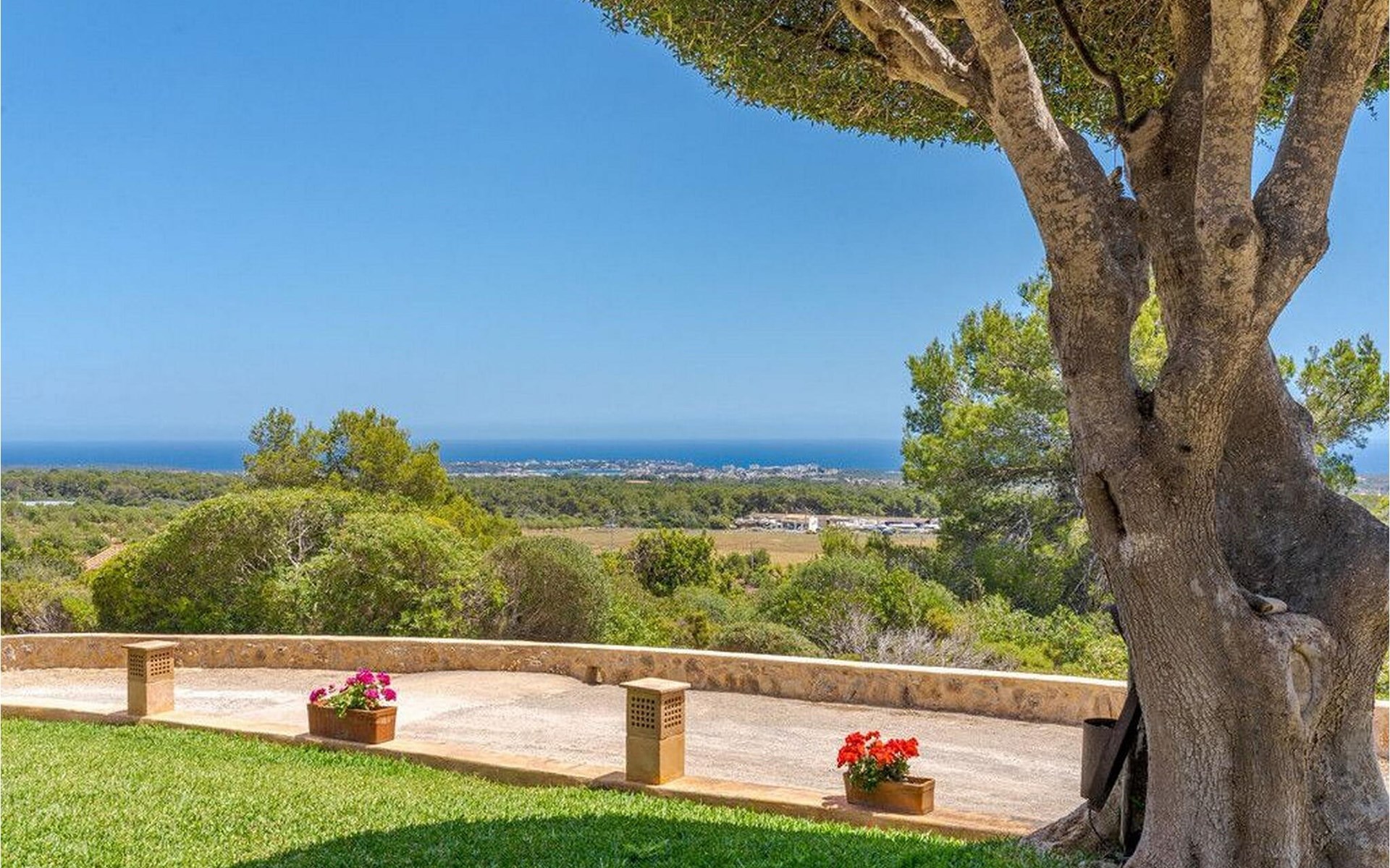 Der Ausblick ist einfach fantastisch. Von der hübschen Finca „Es Socorrat“ aus kann man nicht nur ins Grüne, sondern auch auf das in der Ferne glitzernde Meer und den malerischen Hafen von Portocolom blicken. Das charmante Fischerdorf ist nur ca. 5 km entfernt und den Strand Cala Marçal erreichen Sie nach ca. 6 km.