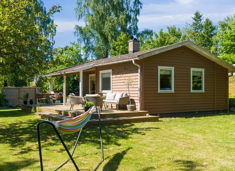 Schönes Ferienhaus aus Holz in einem ruhigen Ferienhausgebiet in Løkkeby zentral auf Langeland.