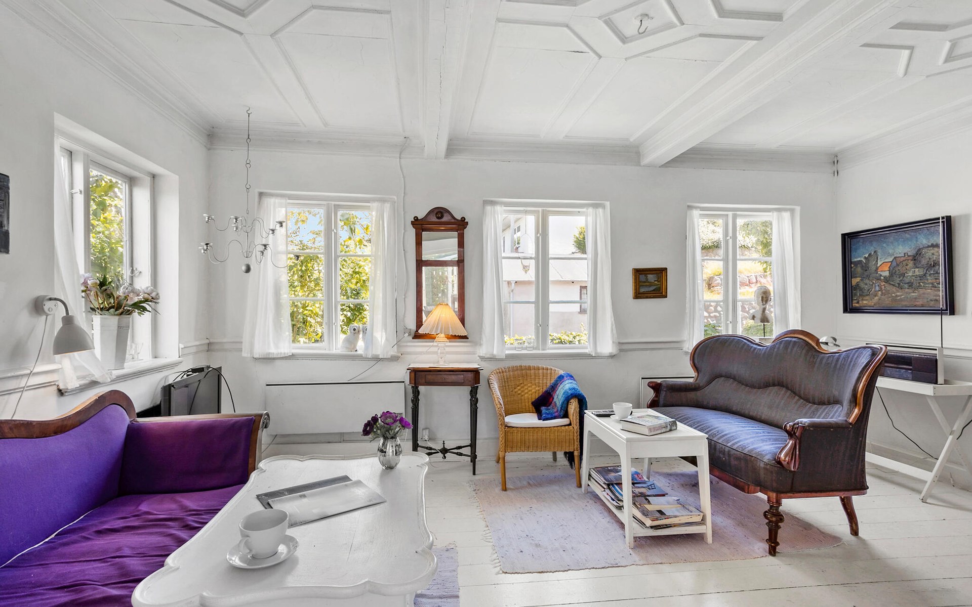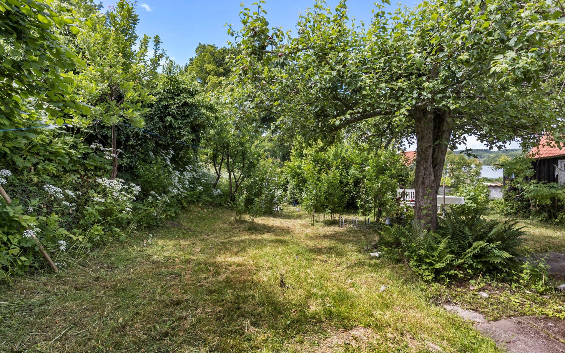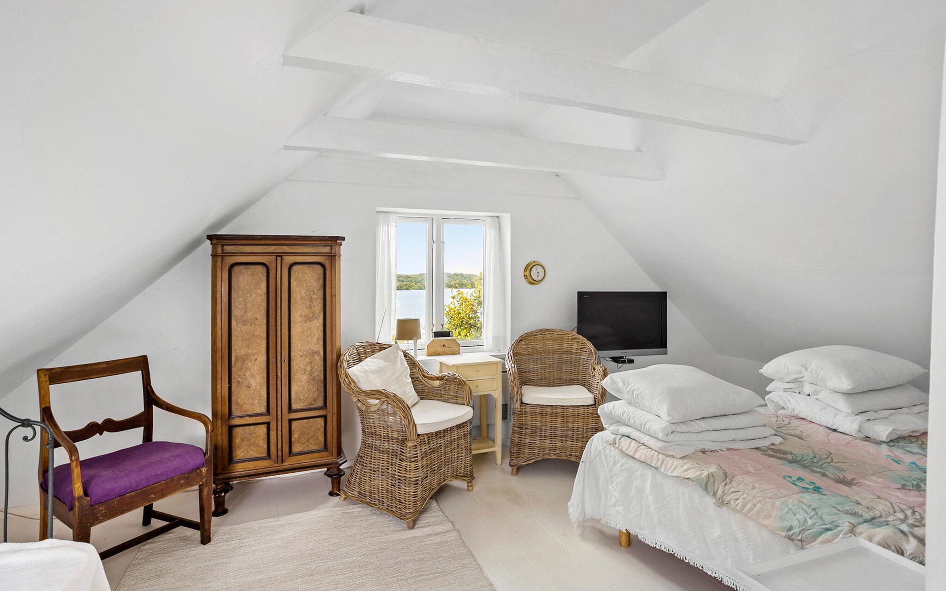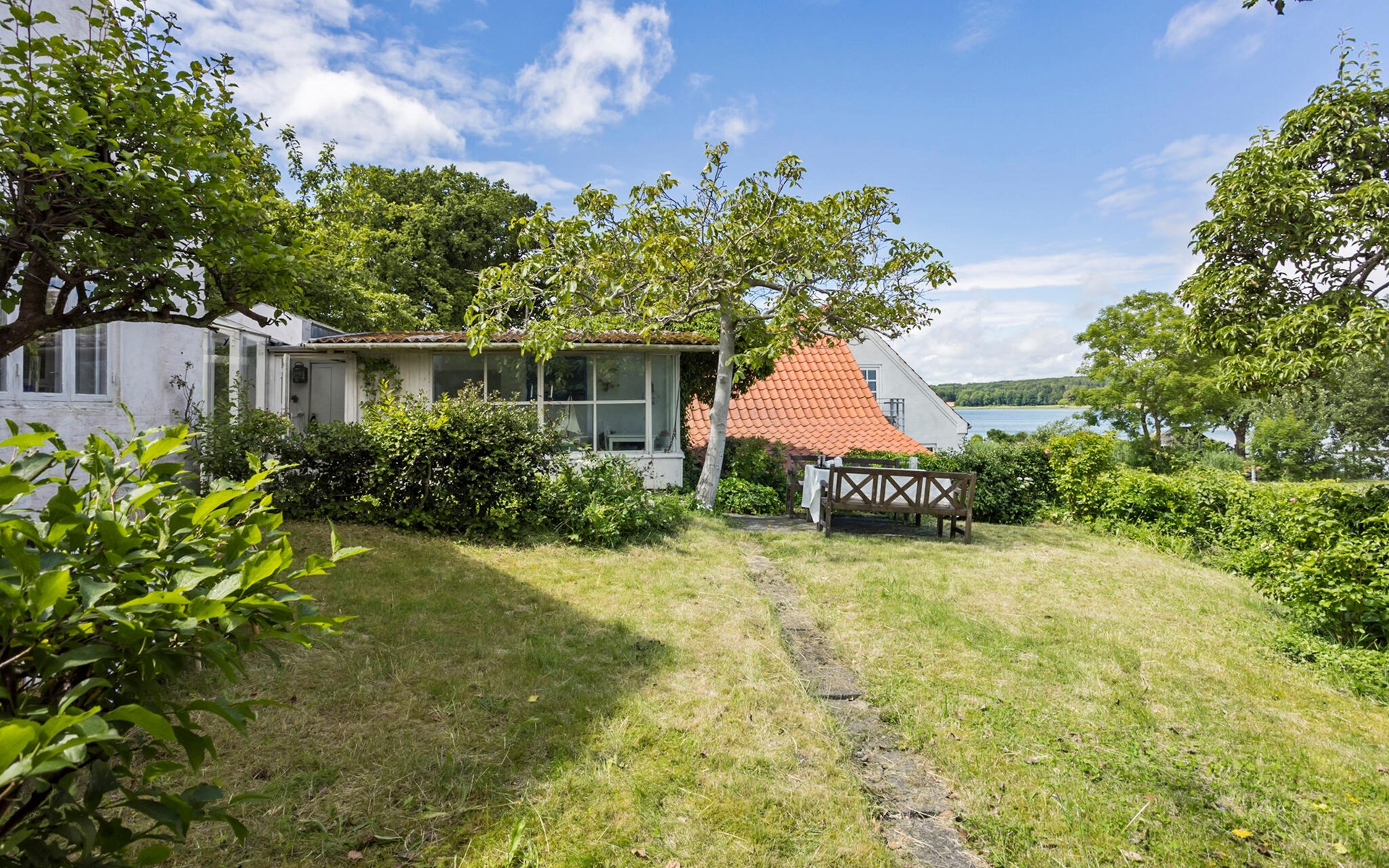 Nur unweit von der idyllischen Stadt Svendborg entfernt, bietet dieses gemütliche Ferienhaus, eingebettet in einen wilden Naturgarten mit Obstbäumen, alles, was das Herz begehrt. Es liegt in einem idyllischen Fischerdorf und besticht durch seinen direkten Blick auf den Svendborgsund, den man sowohl aus mehreren Zimmern als auch aus dem Garten und dem einladenden Wintergarten genießen kann. Hier kann man die Seele baumeln lassen und den Ausblick auf das Wasser und die vorbeiziehenden Boote auf sich wirken lassen. Die Innenräume des Hauses sind hell und freundlich gestaltet und strahlen eine warme, gemütliche Atmosphäre aus. Der Wohnbereich ist mit einem Kaminofen ausgestattet, der an kühleren Abenden für wohlige Wärme sorgt. Traditionelle Möbelstücke ergänzen das Interieur und schaffen ein harmonisches Gesamtbild.