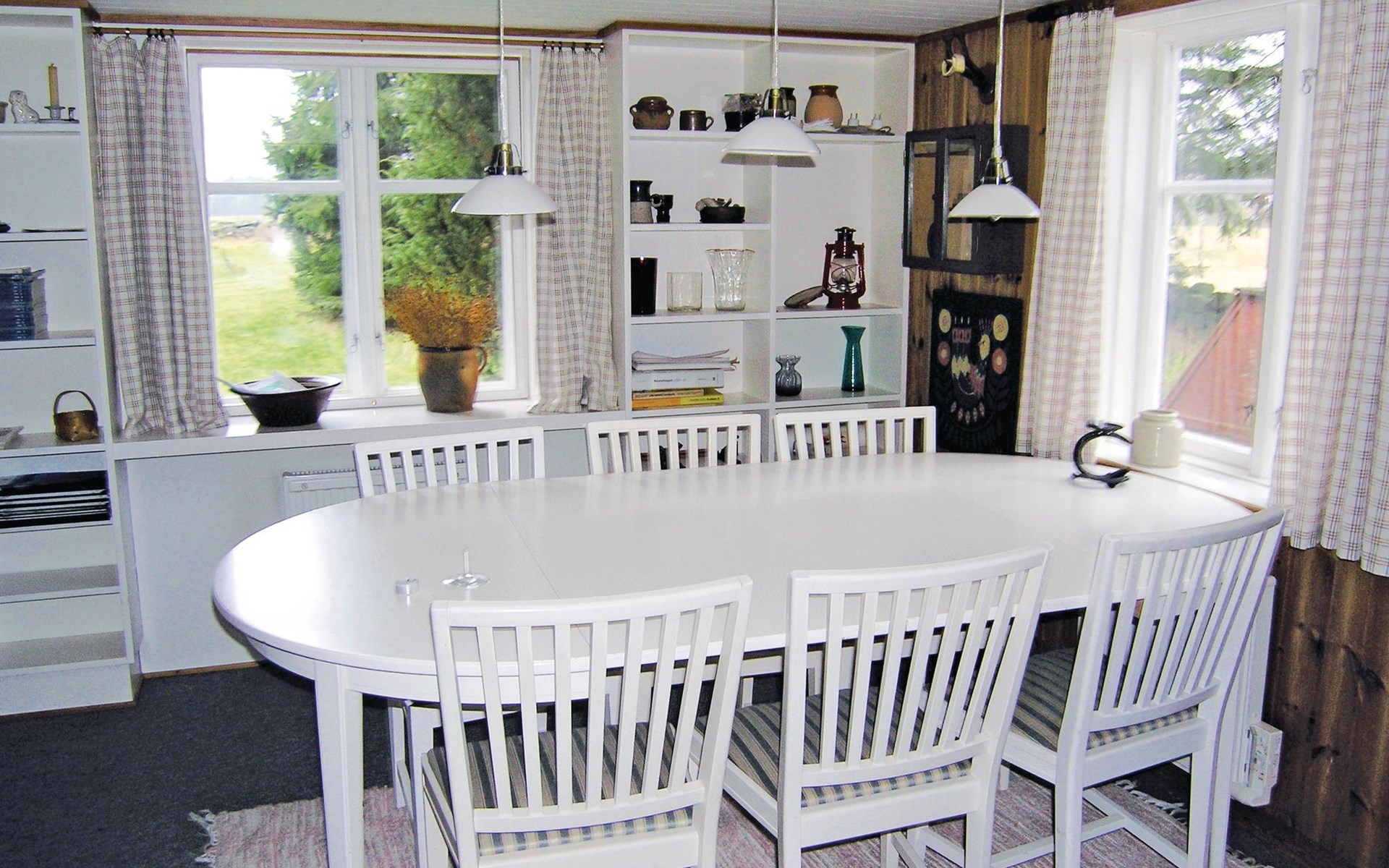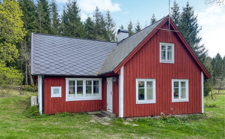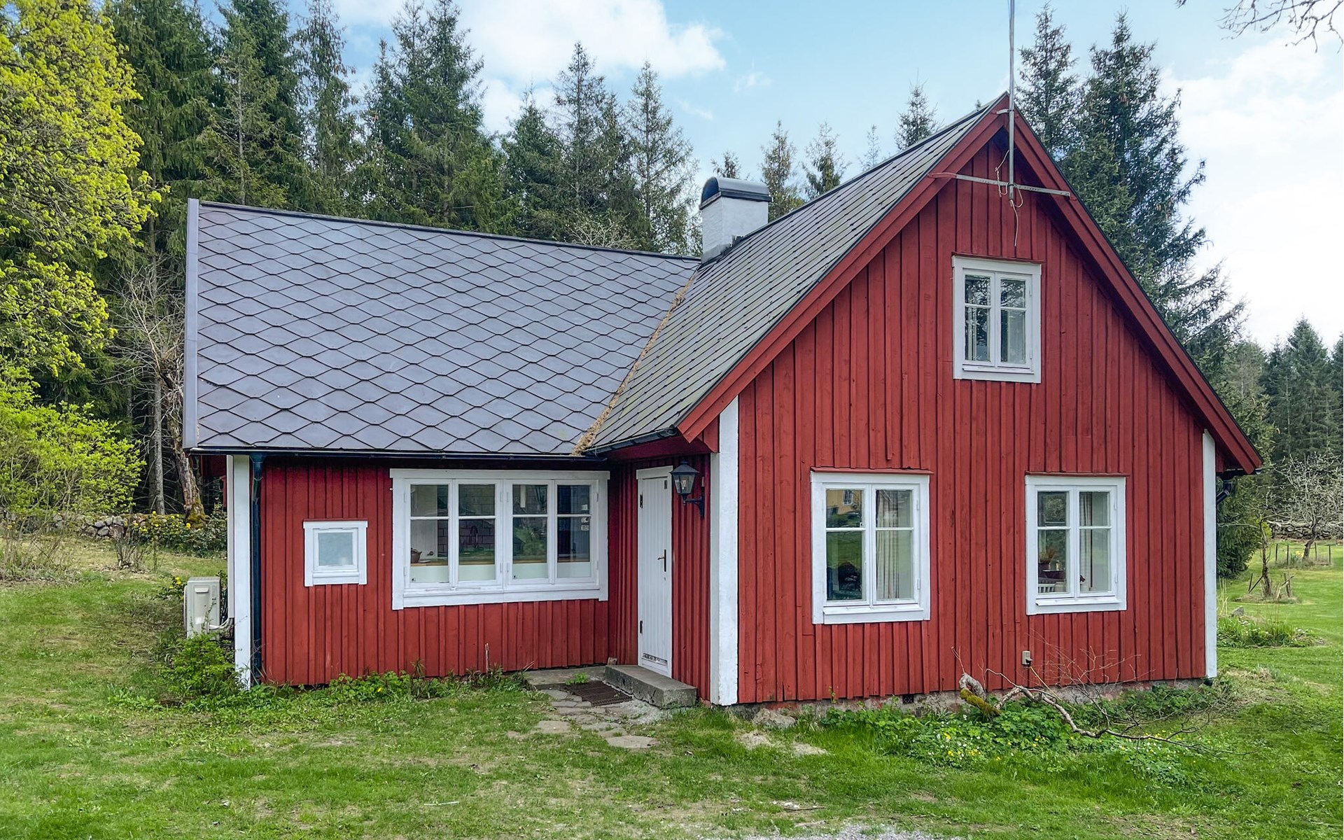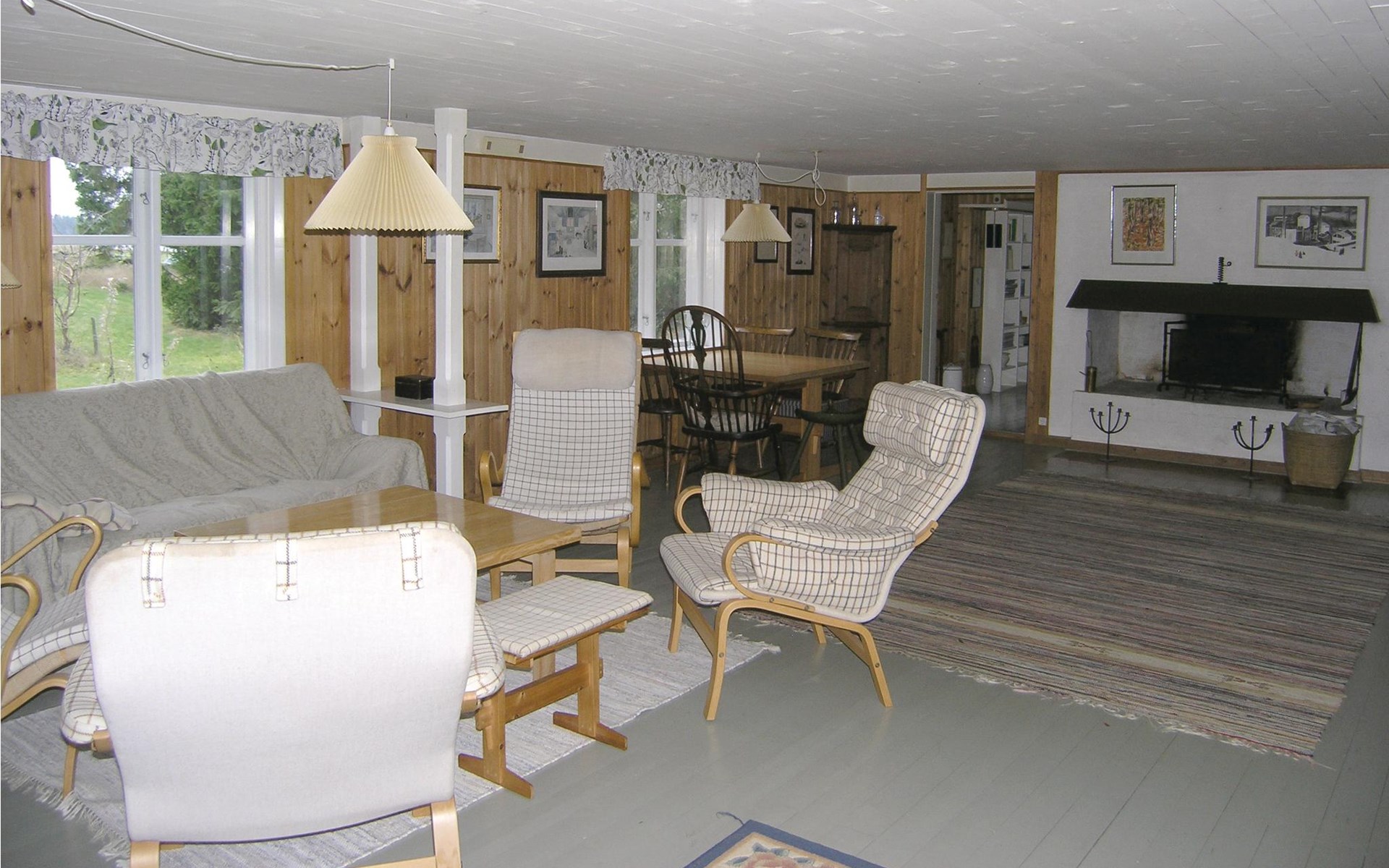 Echtes Smålandhaus in ungestörter Lage. Es wird von einem großen Naturgrund mit einer Steinmauer umrahmt. Für das gemütliche Beieinander verfügen sie über einen 55 m² großes Wohnzimmer mit offenem Kamin. Der Bade- und Angelsee liegt nur 2 km entfernt. Sie haben es aber auch nicht weit zum Bolmen, der 20 km weit weg ist. Schlafzimmer 3 als Durchgangszimmer. Deutsches und Schwedisches Fernsehen, keine übrigen, skandinavischen Kanäle. Der Elchpark Småland liegt ca. 46 km entfernt. Niedrige Decken und Türschwellen im Haus.