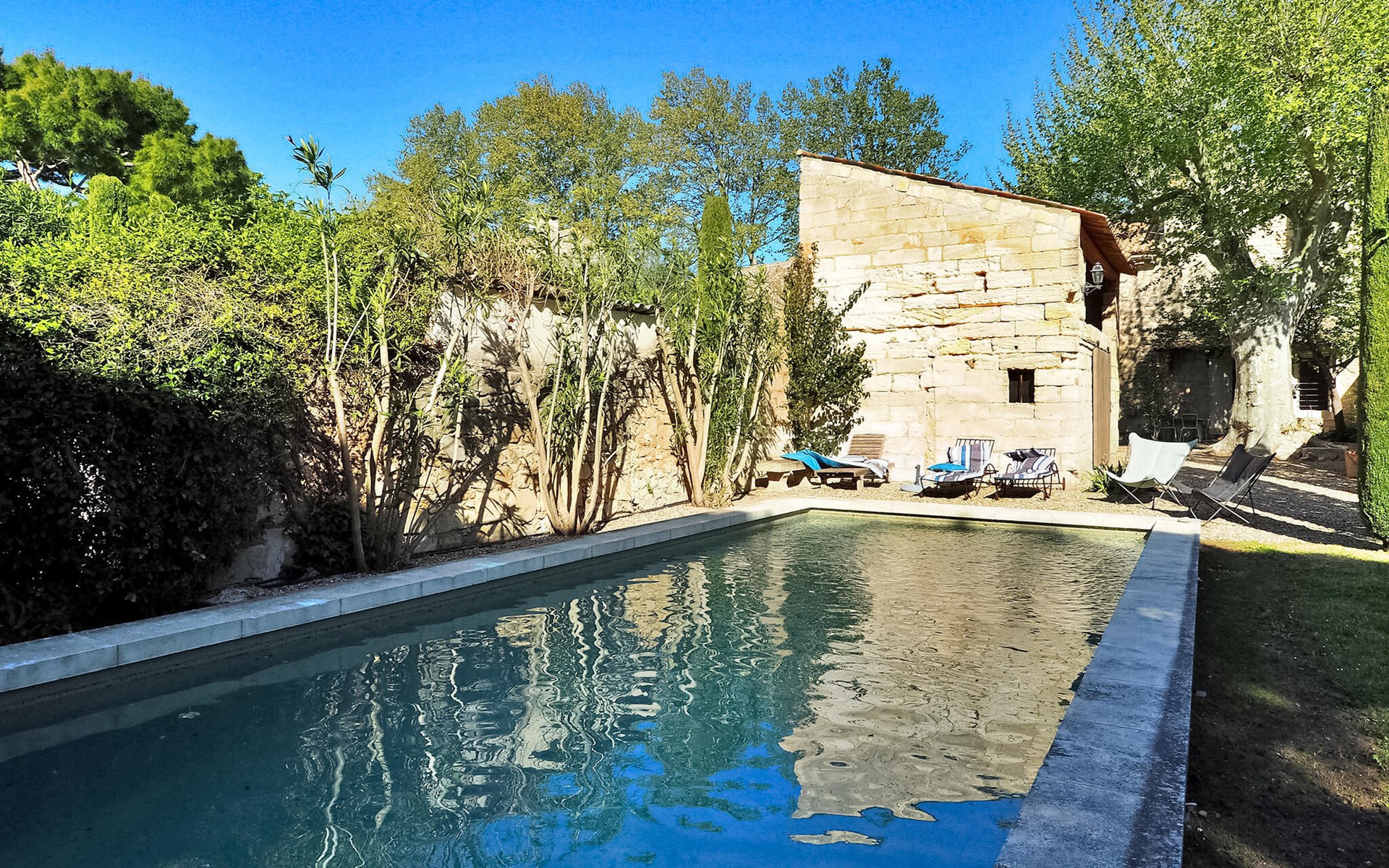 Das Ferienhaus in Paradou bietet einen privaten Pool und einen schattigen Garten. Es erstreckt sich über drei Etagen und umfasst Annehmlichkeiten wie eine TV-Lounge, eine gut ausgestattete Küche, Wäschemöglichkeiten, einen Wohn-/Essbereich und vier Schlafzimmer, die sich zwei Badezimmer mit teilweiser Klimaanlage teilen. Draußen steht neben einem privaten Pool ein schattiger Bereich mit Sitzgelegenheiten zur Verfügung. Bitte beachten Sie, dass es auf dem Grundstück der Unterkunft einen gesicherten Brunnen gibt. Das Haus liegt direkt an der Straße, die zum Dorf Paradou führt, und ist nur etwa 400 m von der örtlichen Bäckerei, Metzgerei, Minimarkt, Fahrradverleih, Ärzten und Bar entfernt. Genießen Sie Ihren Urlaub in einem Bauernhaus (Mas), Ihrer Ferienwohnung in den Bouches-du-Rhône in der Provence.