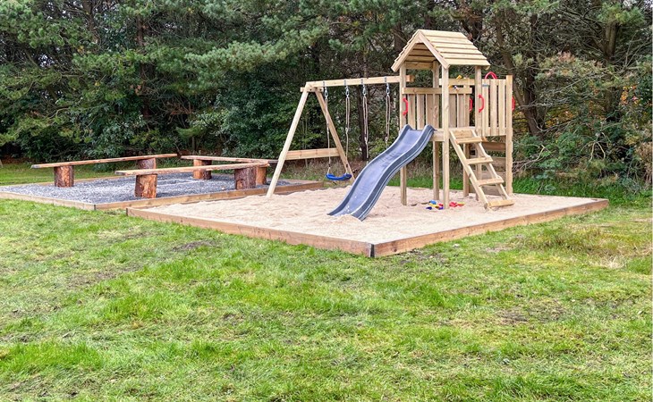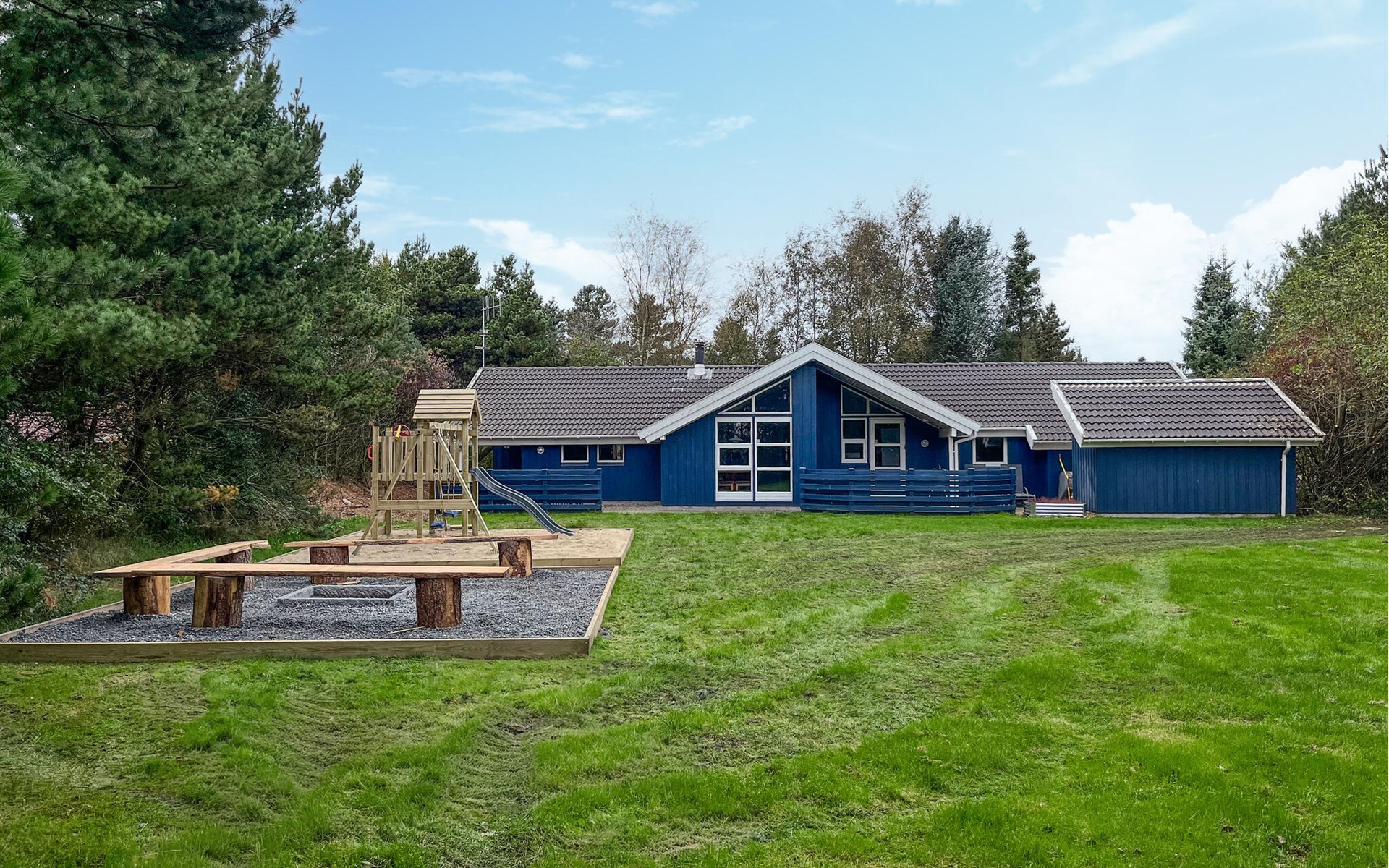 Schönes Ferienhaus auf ungestörtem Grundstück mit Spielburg, Schaukeln und einer Sandkiste mit Spielzeug. Das Ferienhaus besitzt auch ein hübsches, geräumiges Badezimmer, das mit einem Luxuswhirlpool und einer Sauna bestückt ist. Alle Schlafzimmer haben TV, Spielkonsolen können angeschlossen werden. Von der großzügig dimensionierten Wohnküche mit Klinker, Bodenheizung und Kaminofen kommen Sie direkt auf die verflieste, windgeschützte Terrasse. Das Haus liegt einzigartig schön und bequem zu Fuß vom Aktivitätscenter, der Hüpfburg, Geschäften und einem Restaurant entfernt. Nicht weit ist es zum Wald Blåbjerg Plantage mit ausgeschilderten Wegen und Herden von Kronwild.