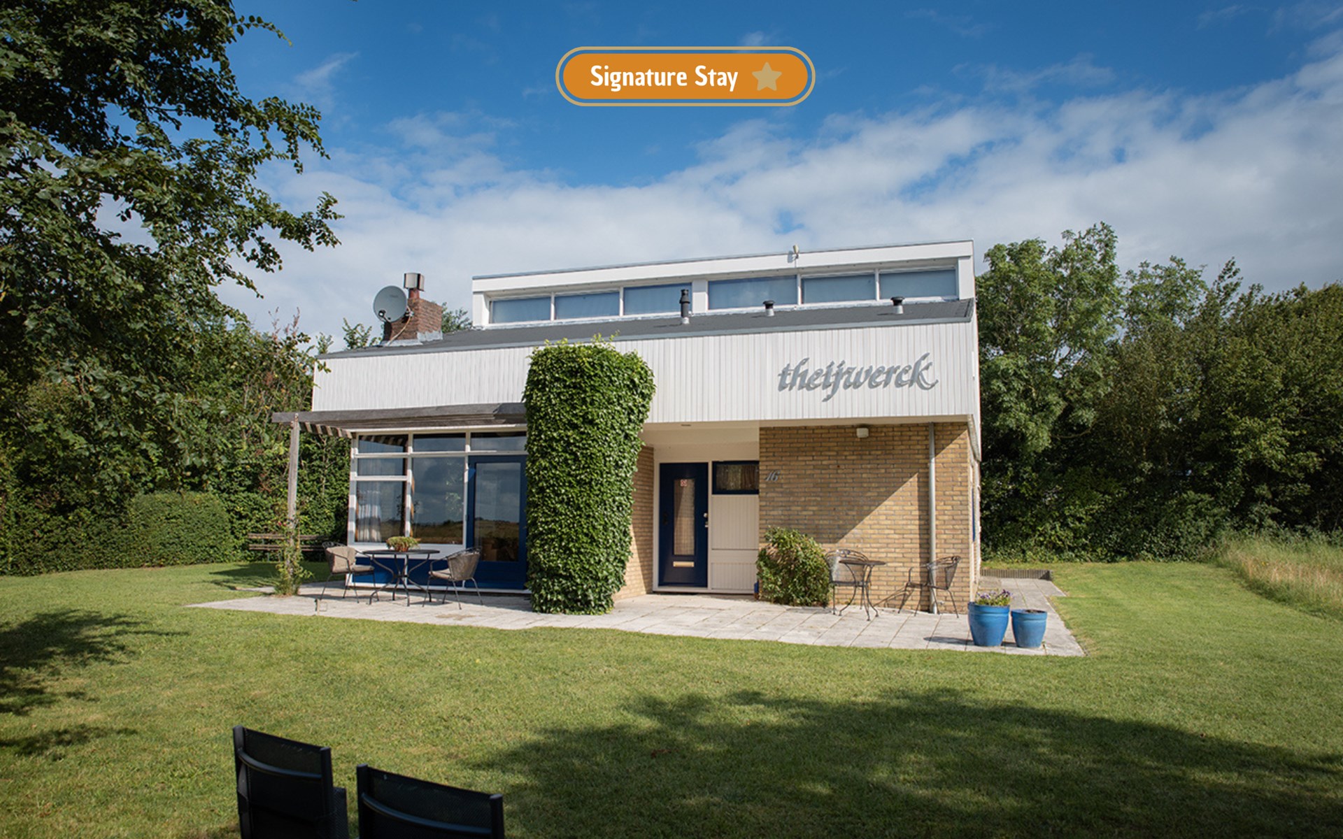 Mit einer traumhaften Lage auf dem leicht erhöht großen Dünengrundstück ist im Ferienhaus Theijwerk die beste Grundlage für einen gelungenen Urlaub gegeben. Vom Haus und der Südterrasse haben Sie einen fantastischen Panoramablick über ein Naturschutzgebiet mit seiner Dünenlandschaft. Hier erleben Sie jeden Tag wieder etwas Neues, das Sie fasziniert. Ob im Liegestuhl oder beim Aperitif am Gartentisch, diese Eindrücke laden einfach zum Entspannen ein.