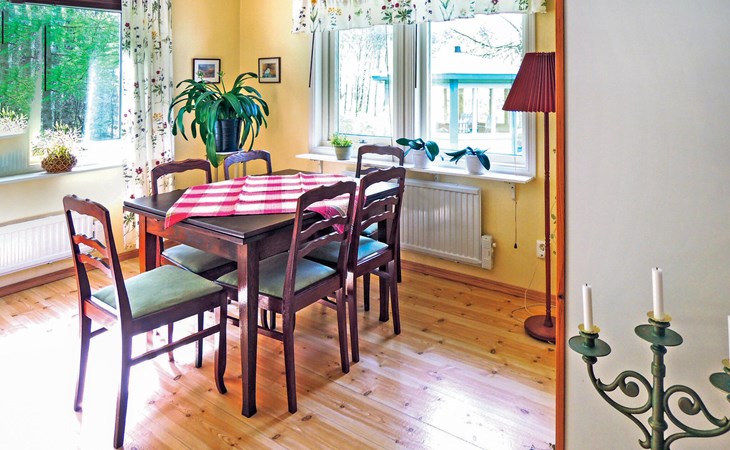 Gepflegtes Haus der mit schöner Einrichtung. Genießen Sie das angenehme Innere, den eindrucksvollen Kaminofen und die Aussicht vom Esstisch. Private Lage 200 m vom Bach Ätran mit der Möglichkeit des temperierten Schwimmbads und der Edelfischerei. 2 Räder. Ullared 16 km. Pavillon 12 m2 mit Gartenmöbeln: Tisch und 6 Stühlen. 7 km vom schönen See Fegen entfernt, wo Sie ein Kanu mieten können. Schöne Bademöglichkeiten im Meer bei Falkenberg und Varberg, 40 km. Ullared 20 km, dort erwartet Sie das Outletcenter Gekås. In Ullared können Sie sich auf abenteuerliche Weise zwischen Baumwipfeln bewegen, ein spannendes Unternehmen für die ganze Familie (Kinder ab 8 Jahre).