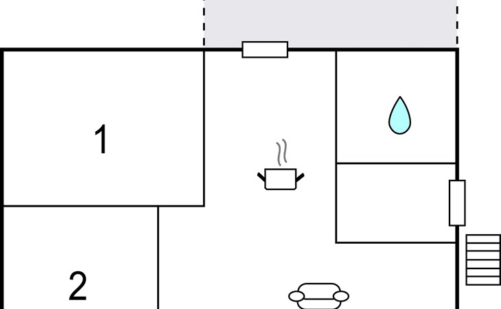 Das Wasser wo Sie Angeln und Schwimmen können, ist nur 10 Meter von der Wohnung entfernt. In der gleichen Entfernung befindet sich das nächste Restaurant, die nächste Einkaufsmöglichkeit ist nur 100 Meter entfernt.
