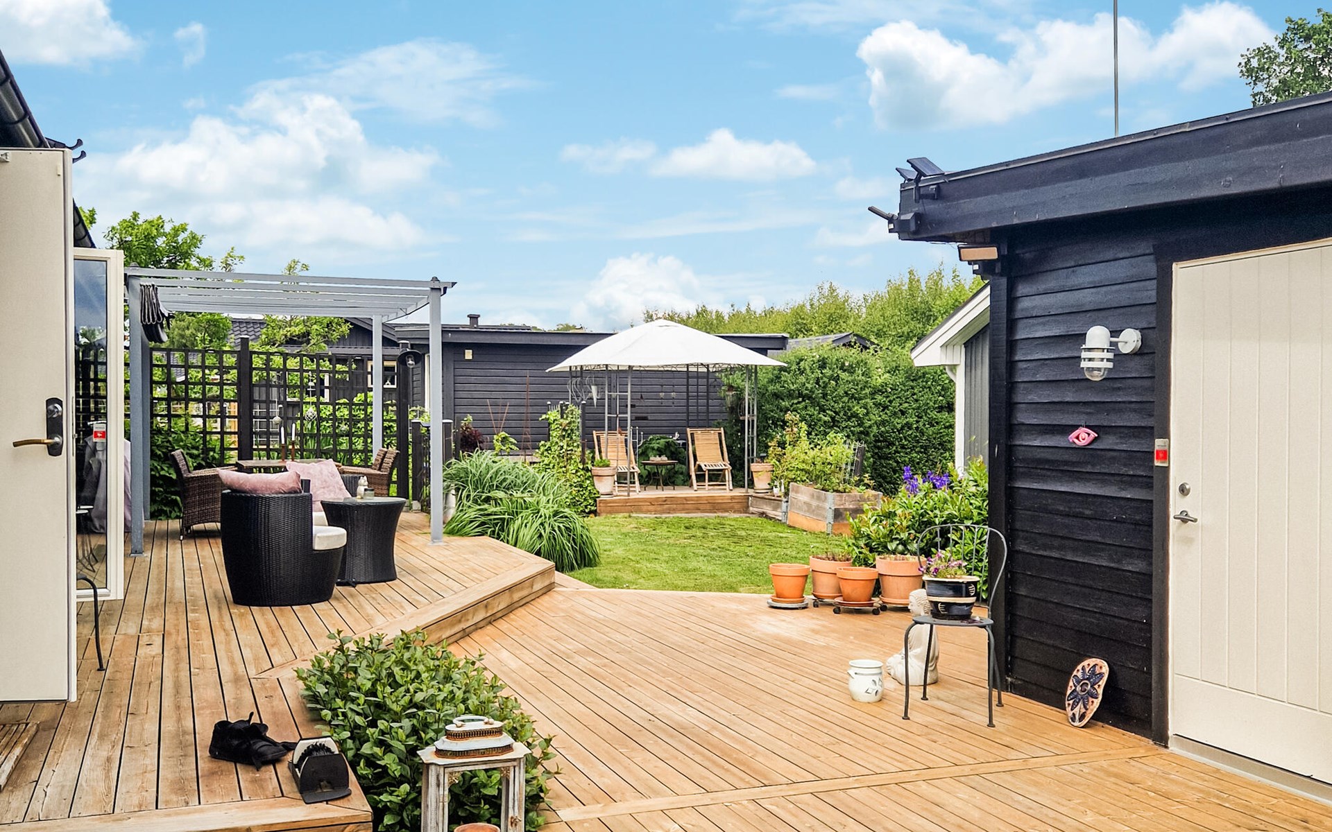 Lassen Sie Ihre Kinder im gepflegten Garten spielen und servieren Sie Ihr Frühstück auf der großzügigen, sonnigen Terrasse. Für ruhige Stunden unter freiem Himmel laden gemütliche Sitzmöglichkeiten auf der halboffenen Terrasse zum Verweilen ein. Entfachen Sie den Grill und genießen Sie die gemeinsame Zeit mit stimmungsvollen Abenden unter freiem Himmel.
