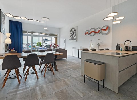 Diese moderne und komfortable Ferienwohnung für vier Personen verfügt über ein gemütliches Wohnzimmer und ist mit allen Annehmlichkeiten ausgestattet. In der offenen Küche mit Essbereich können Sie köstliche Abendessen genießen. Die ebenerdige Unterkunft umfasst zudem zwei Schlafzimmer, ein Badezimmer mit begehbarer Dusche und eine separate Toilette. Durch die Flügeltüren gelangen Sie direkt in den Garten mit Terrasse.