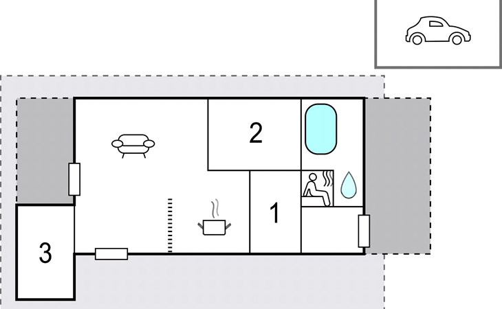 Nicht weit vom breiten Sandstrand und einer beeindruckenden Steilküste liegt dieses nette Ferienhaus, von immergrünen Nadelbäumen gegen den Wind geschützt. Auf gekennzeichneten Wander- und Radwegen begegnet man in dieser abwechslungsreichen Dünenlandschaft einem reichen Tierleben und hinter jeder Dünenkuppe eröffnet sich ein neues Panorama. Oder Sie lassen das erfrischende Nordseewasser um die bloßen Füße spülen. Hier finden sich auch gerne Paraglider ein, die von den hohen Dünen zum Sprung ansetzen können. Für Golfer, ob Anfänger oder Geübte, gibt es in Løkken und Blokhus schön gelegene Golfplätze. Wer mit selbstgefangenem Fisch zum Mittagsessen beitragen will, hat hierzu gute Chancen an der Mole, am Strand oder in nahegelegenen Put & Take-Seen. Es sind nur ca. 5 km in den belebten Badeort Løkken, wo man u. a. im Action-House sich mit Bowling, Go-Karts, Laserspielen und dergleichen amüsieren kann. Hier fehlen auch nicht Diskotheken, nette Cafés und Restaurants. Lustig wird es, wenn man zwischen 50 Vergnügungen im Fårup Sommerland wählen, sich im großen Freiluftwasserland tummeln oder im Family Farm-Fun Park einer Vielzahl an zahmen Tieren näherkommen kann. Besuchen Sie auch die Mårup Kirche, die in der Verfilmung einer Novelle von Karen Blixen zu sehen war, oder den Leuchtturm von Rubjerg, der jetzt versandet. Beide zeugen von den unbändigen Naturkräften in dieser Gegend.