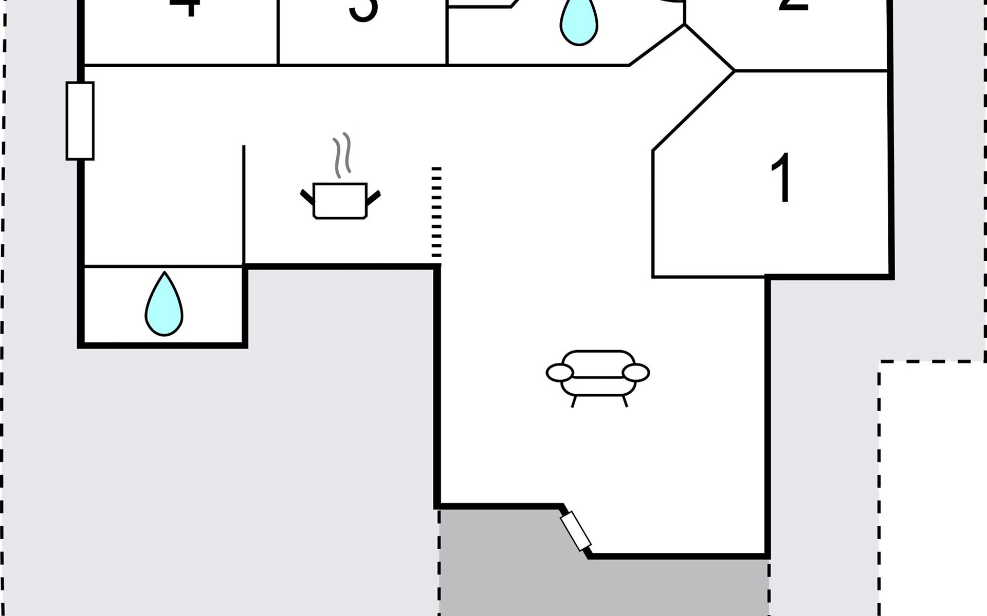 Das Haus liegt auf einem Rasengrundstück mit einem hohen Bewuchs gegen Südwesten, der einen guten Windschutz bietet. Hier können Sie richtig lange Sommerabende genießen und beinahe die Hälfte der Terrasse ist sogar überdacht.