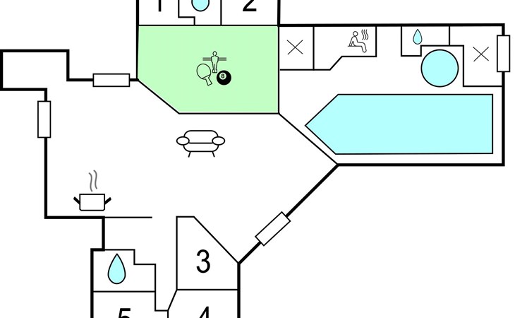 In diesem Haus für 15 Personen wird garantiert keinem langweilig: beim Planschen im 24 m² Pool und Relaxen im Whirlpool, bei Urlaubswettkämpfen am Billardtisch, am Tischtennis, mit Darts, beim Spielen an der Playstation, oder wenn Sie einfach nur auf der überdachten Terrasse faulenzen. Es liegt nicht zu weit vom Strand und in einer Umgebung, die von Anfang an zum Entspannen einlädt. Im Aktivitätsraum werden Sie Urlaubswettkämpfe veranstalten, im Poolraum entspannen. Das Haus ist sehr modern und eignet sich bestimmt ausgezeichnet zum Wohlfühlen und Entspannen. Nicht zuletzt aufgrund der besonderen Decken, die den Schall nicht leiten, sondern Sie die Ruhe genießen lassen.