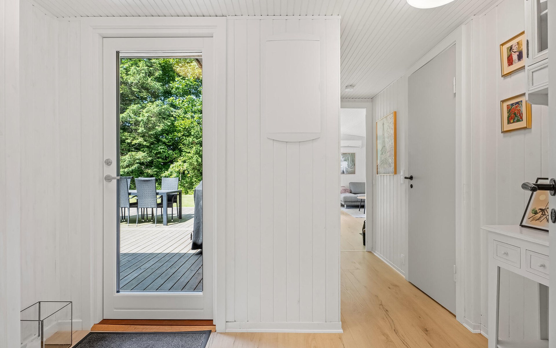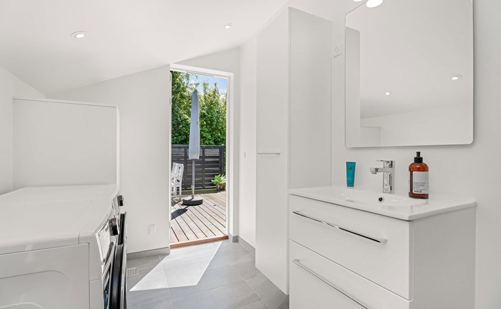 Öffnen Sie die Terrassentür und treten Sie direkt ins Freie. Sonnen Sie sich auf der Holzterrasse, versammeln Sie sich zum Grillen am großen Esstisch oder entspannen Sie mit einem Buch unter dem Sonnenschirm. Der weitläufige Garten ist umgeben von hohen Bäumen und bietet nicht nur Ruhe und Privatsphäre, sondern auch viel Platz zum Spielen und Toben.