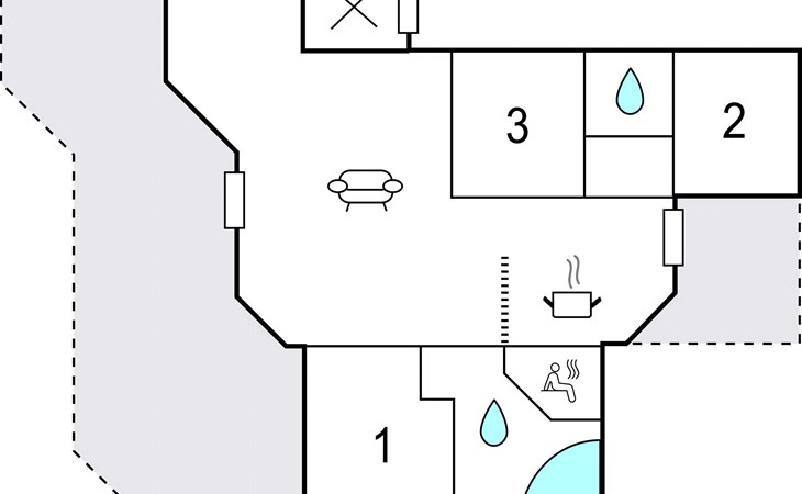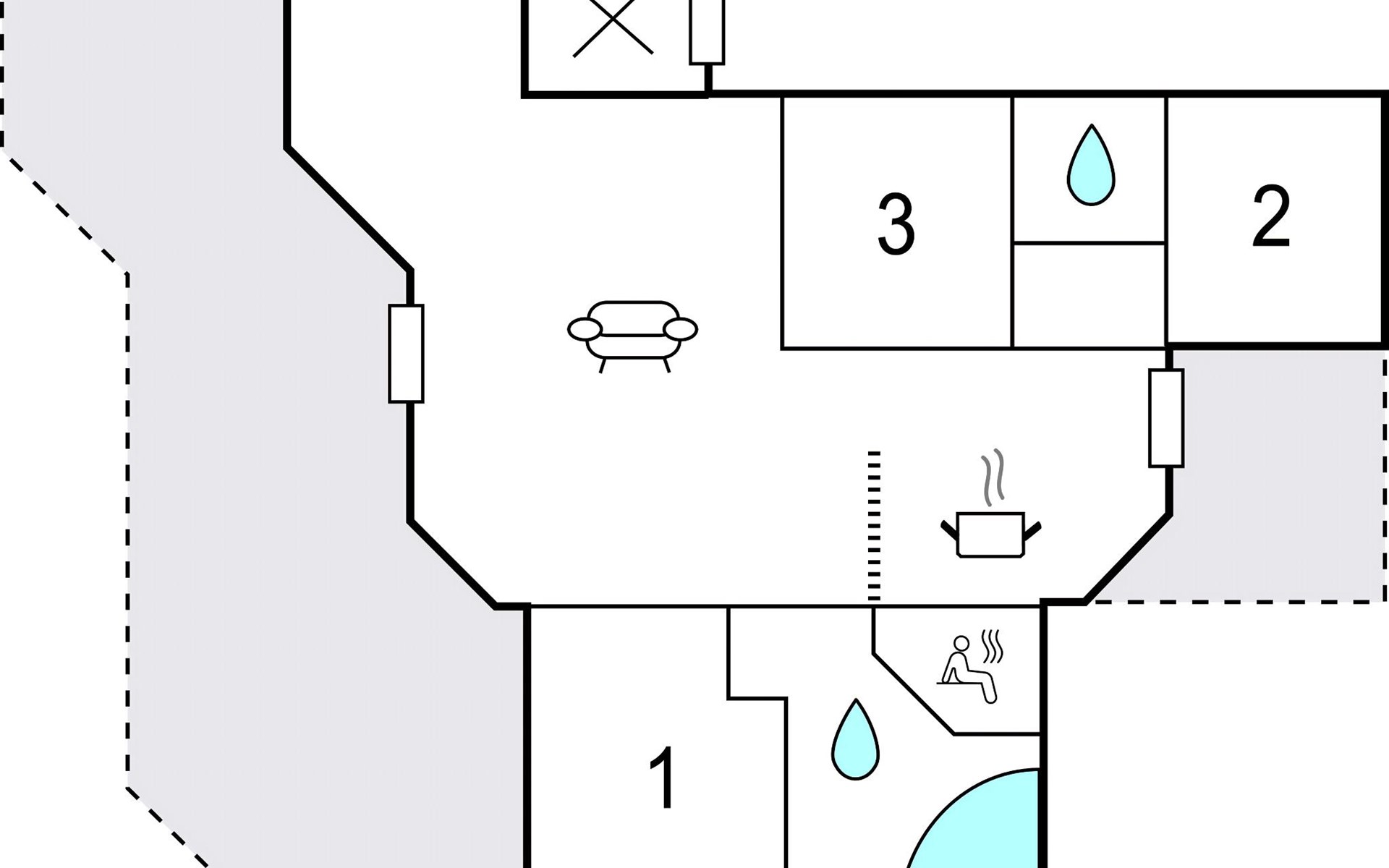 Vom Wohnzimmer aus können Sie direkt auf die große, nach Westen ausgerichtete und teilweise überdachte Terrasse gelangen. Die Terrasse verläuft fast rund um das Haus, sowohl im Westen als auch im Süden und Osten, sodass es immer möglich ist, eine Ecke mit Sonne und Schutz zu finden. Im Wellnessbereich des Hauses können Sie nach einem Strandspaziergang entweder in der Sauna oder im Whirlpool entspannen.
