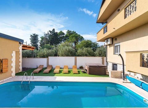 Im Erdgeschoss befindet sich eine komplett ausgestattete Küche, ein Essbereich für 12 Personen und ein geräumiges Wohnzimmer. Das Wohnzimmer öffnet sich zu einer geräumigen Terrasse mit herrlichem Meerblick und schöner Sitzecke, wo man am Abend genießen kann. Das Esszimmer öffnet sich zu einer erstaunlichen hinteren Terrasse mit einem al-Fresco-Esstisch am Pool. Ein Gasgrill ist ebenfalls vorhanden. Im ersten Stock gibt es drei Doppelzimmer mit En-suite Badezimmer und Balkon, um eine Tasse Kaffee morgen früh zu genießen. Im zweiten Stock gibt es drei Schlafzimmer. Ein Doppelbetschlafzimmer mit En-suite und zwei Schlafzimmer (Doppel- Einzelbettzimmer) mit Gemeinschaftsbad. Die beiden Einzelbetten können als Doppelbett zur Verfügung gestellt werden. Alle Zimmer sind klimatisiert und verfügen über SAT-TV. Es gibt vier Parkplätze, von denen zwei in der Garage sind.Crikvenica ist eine kleine Stadt mit einer hundertjährigen Tradition im Tourismus und bietet alles, was man in einem Urlaub brauchen könnte ... lange Sandstrände, schöne Promenaden, umgeben von Palmen und bunten Blumen. Es gibt niedliche kleine Geschäfte und viele touristische Veranstaltungen. Es ist eines der beliebtesten Touristenziele Kroatiens. Sportliebhaber können aus einer Vielzahl von Aktivitäten wie Radfahren, Minigolf, Tischtennis, Segeln, Jetski, Paragliding, Tauchen, Fußball, Basketball, Bowling, Paintball, Beach-Volleyball, Wandern und vieles mehr auswählen. Wenn Sie sich entscheiden, Sightseeing zu machen, gibt es viele Ausflugsboote, mit welchen Sie auf die Inseln Rab, Krk und Lošinj fahren können. Nur 30 Autominuten von der Villa entfernt, befinden sich die Nationalparks Risnjak und Nord Velebit sowie der Naturpark Ucka. Der Nationalpark Plitvicer Seen, das UNESCO-Weltkulturerbe mit der spektakulärsten atemberaubenden Landschaft, ist nur eine Autostunde entfernt.