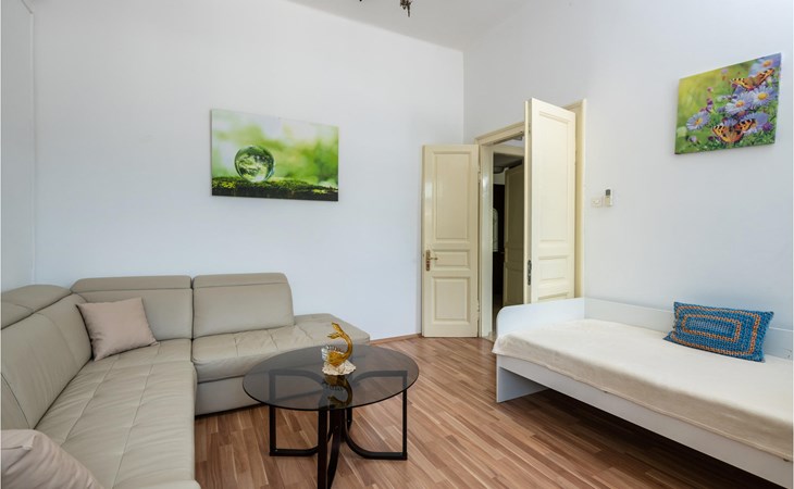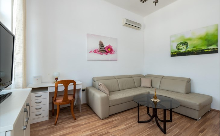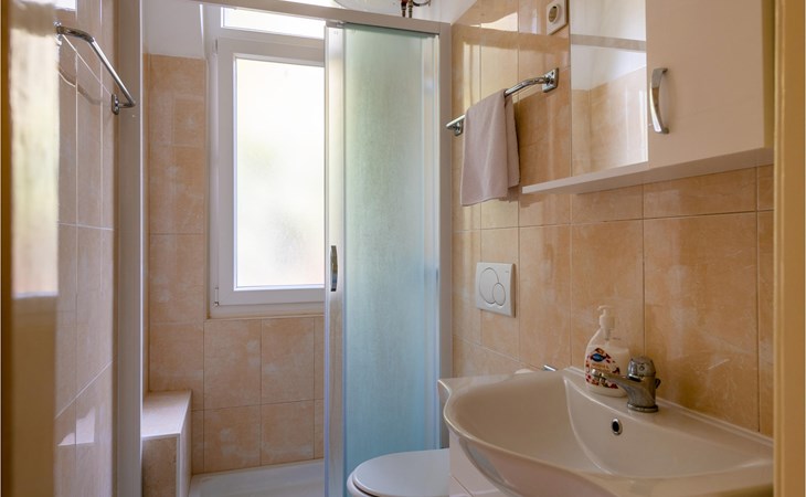 Die Wohnung begrüßt ihre Gäste im 1. Stock eines Hauses. Mit ihrer modernen und ansprechenden Einrichtung ist sie der ideale Ort für einen erholsamen Urlaub zu jeder Jahreszeit. Eine Klimaanlage sorgt auch in heißen Sommern für angenehme Raumtemperaturen.
