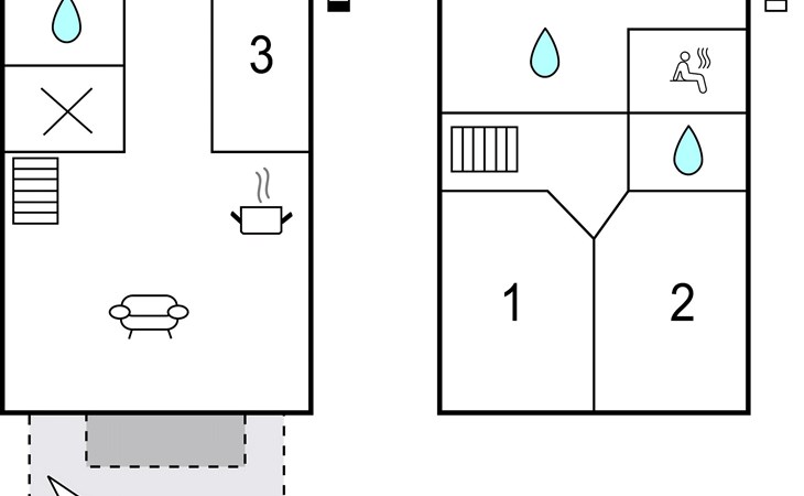 Eines der Schlafzimmer, das Einzelzimmer, ist mit einem besonders komfortablen 1,20 m breiten Bett ausgestattet und liegt ebenso wie eines der Badezimmer (mit Dusche ohne Einstiegsschwellen) im Erdgeschoss, so dass das Haus auch für Gäste sehr gut geeignet ist, die die Treppe in den ersten Stock nicht so gut bewältigen können.
