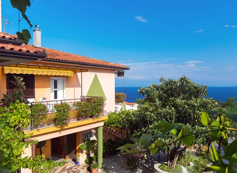 Genießen Sie Ihren Urlaub in dieser modernen Ferienwohnung mit traumhaftem Meerblick und Gemeinschaftspool.